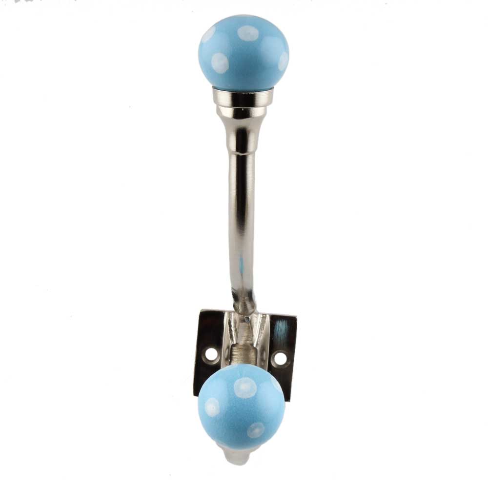 Material: Premium ceramic + solid iron Finish: Glossy turquoise ceramic with white dots, paired with matte or polished iron (varies by finish) Installation: Hidden keyhole or screw mount (hardware included)