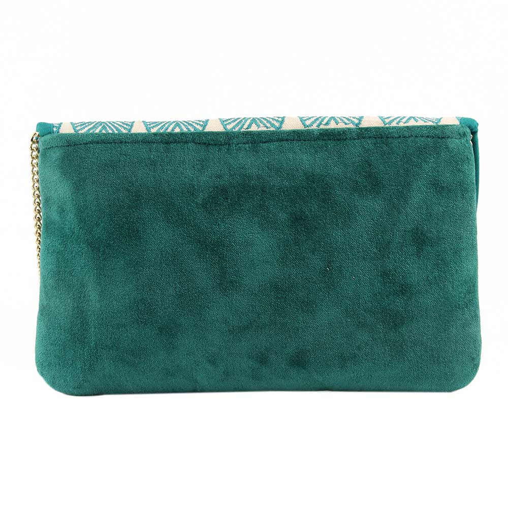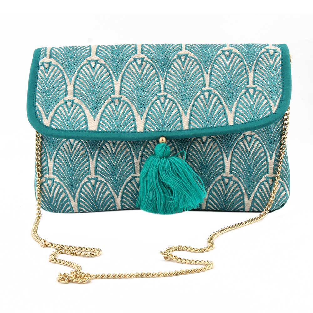 Turquoise embroidered Cotton fold over clutch bag with a golden chain. You can use it on any occasion like parties, anniversary or wedding.
