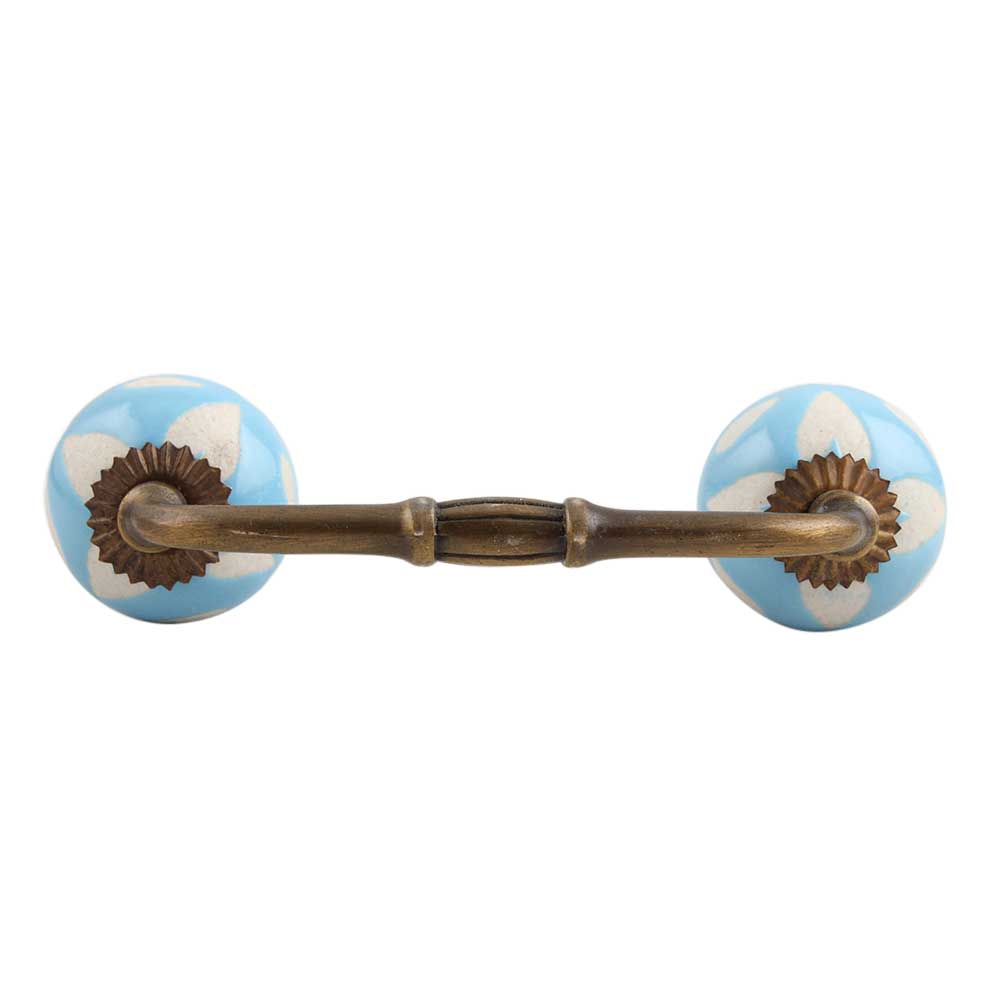 Turquoise Etched Ceramic Bridge Handle. Ideal for Drawer, Dresser, Cabinet, Wardrobe, Cupboard and Almirah.