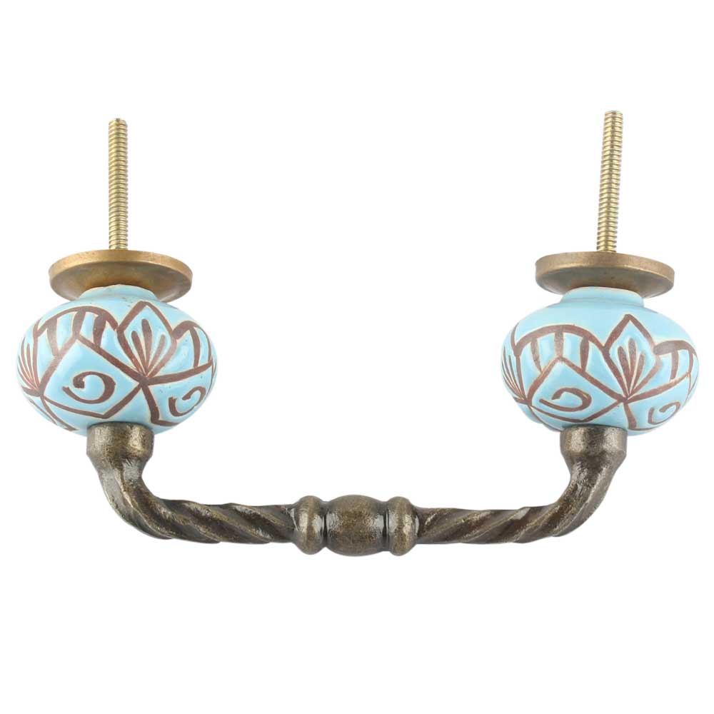 Turquoise Etched Ceramic Cut Bridge Handle Online. Ideal for Drawer, Dresser, Cabinet, Wardrobe, Cupboard and Almirah etc.