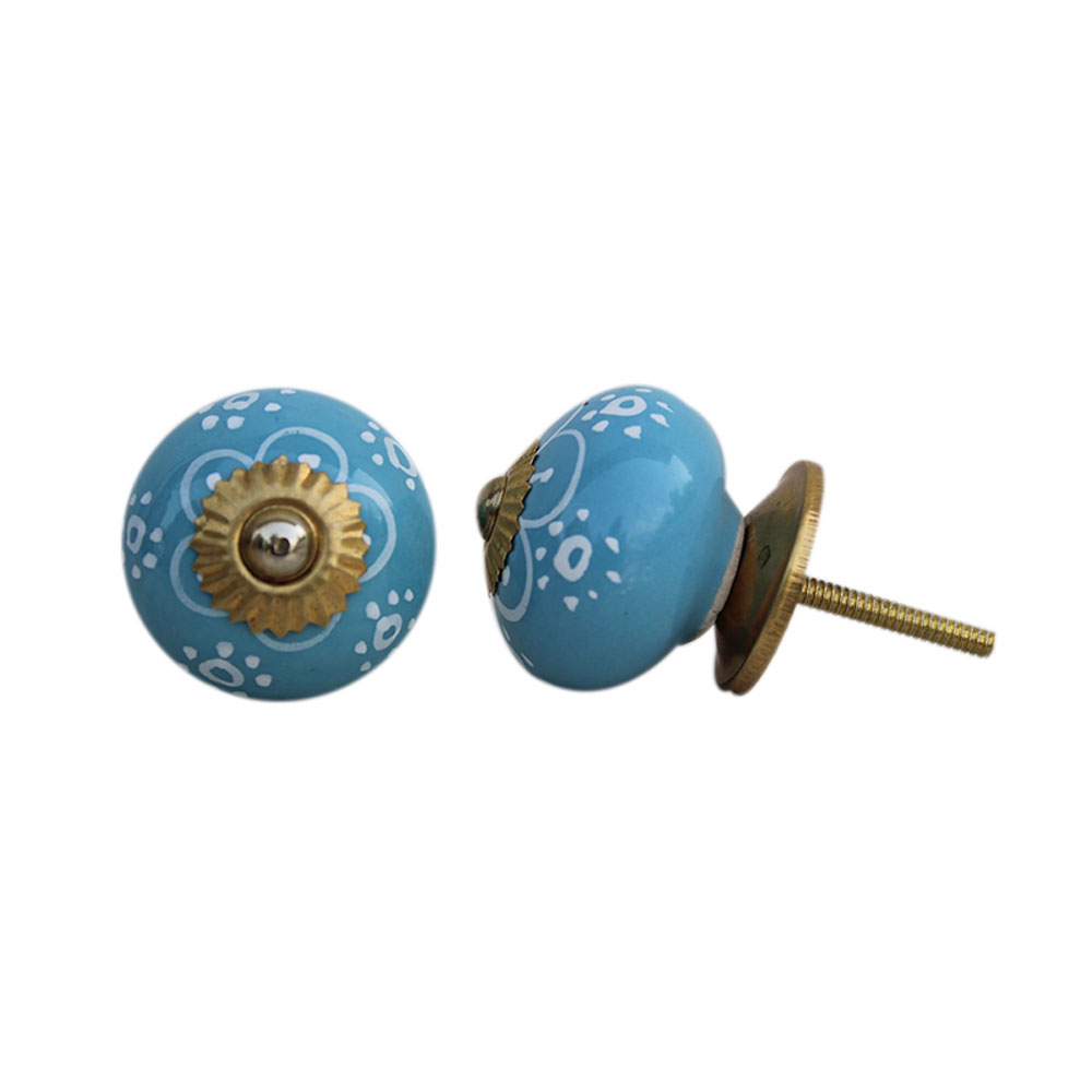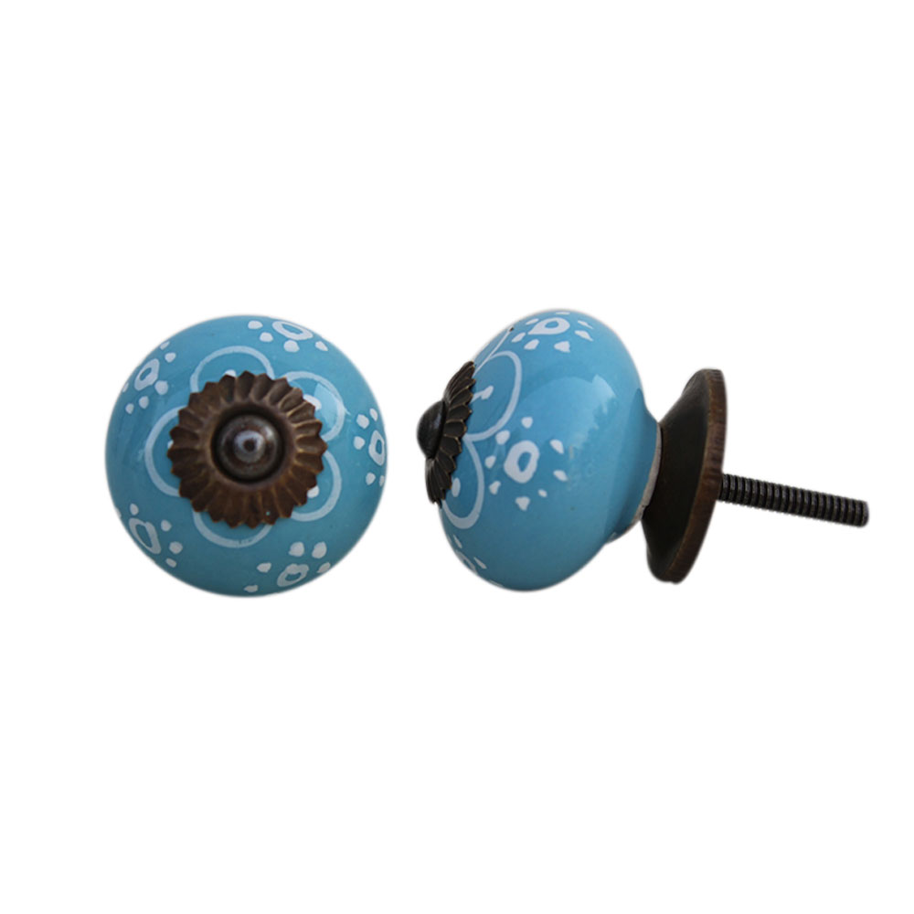 Turquoise Floral Ceramic Knob
