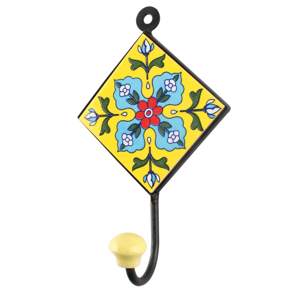 Turquoise Floral Ceramic Tile Hook