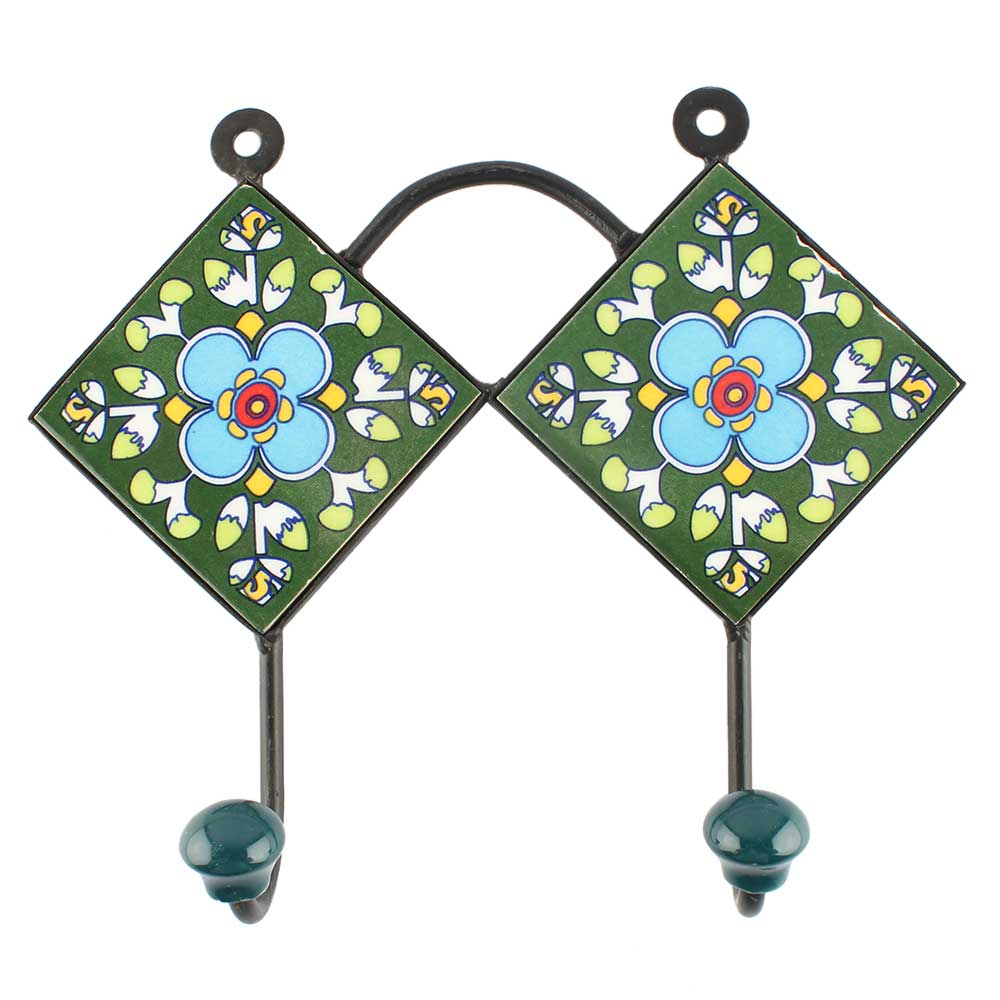 Turquoise Floral Ceramic Tile Wall Hook