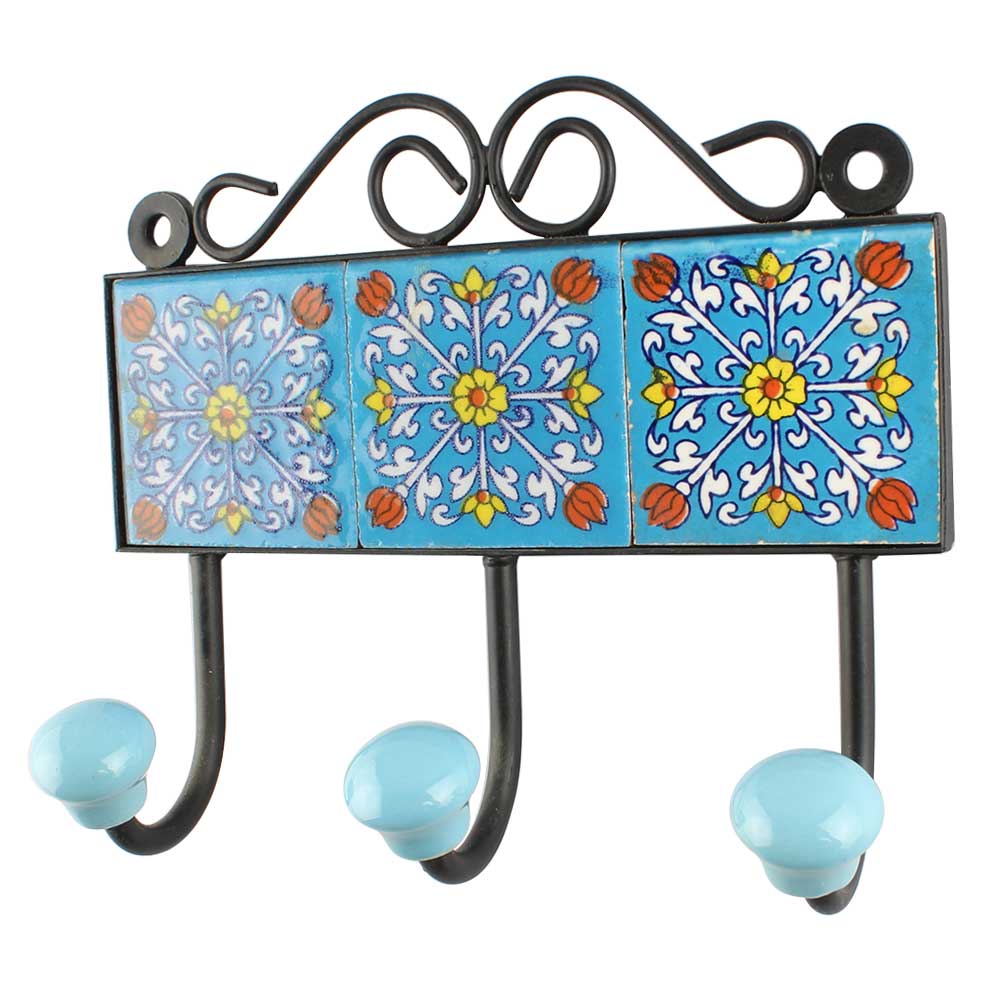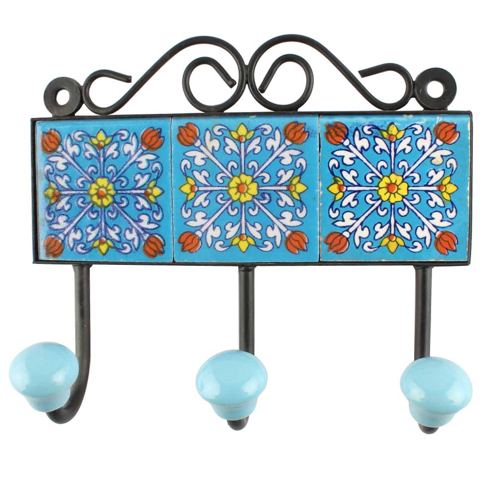 Turquoise Floral Ceramic Tiles Hook Online