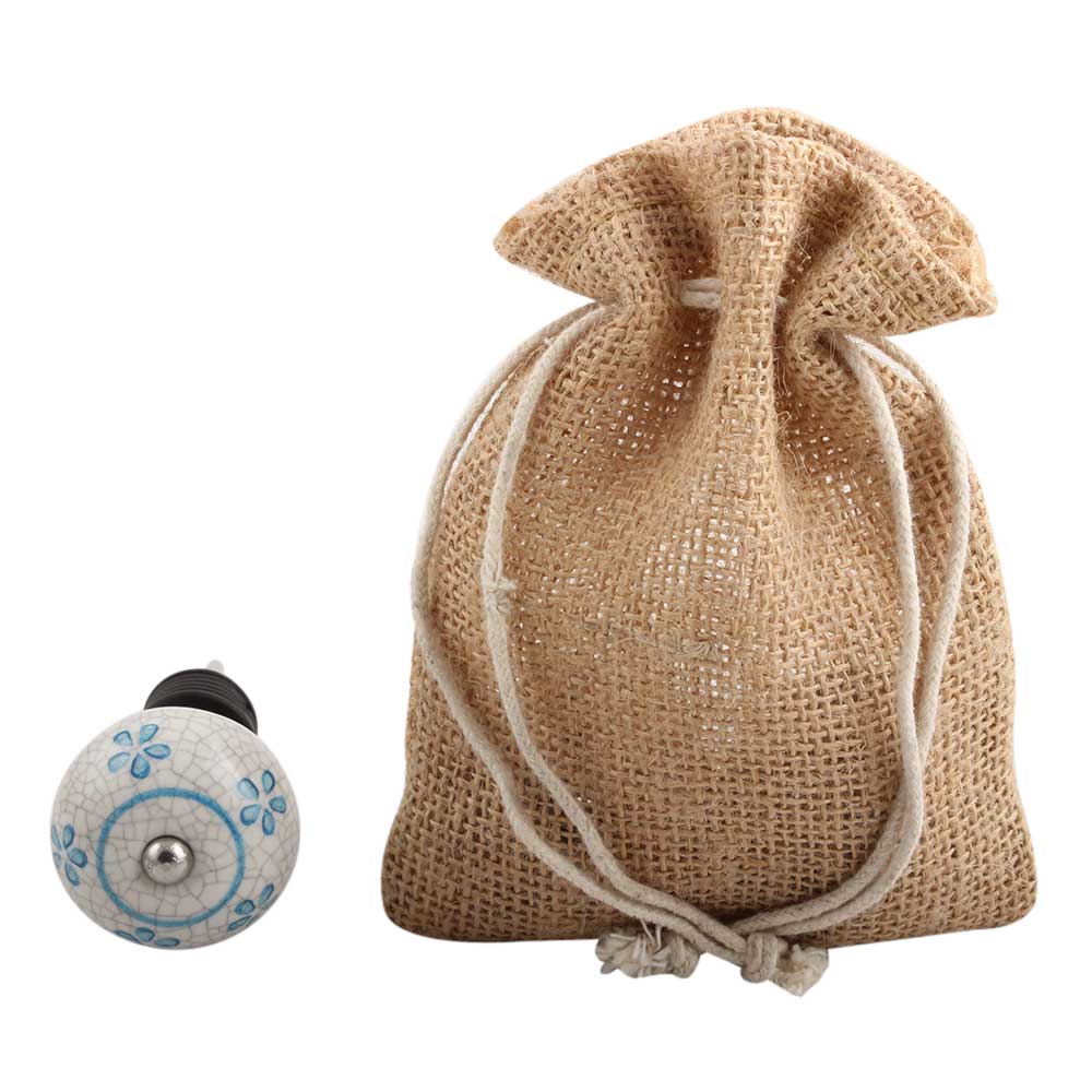 Turquoise Floral Crackle Ceramic Wine Stopper.Zinc Alloy Wine Bottle Stopper with Attractive Jute Bag Packaging.