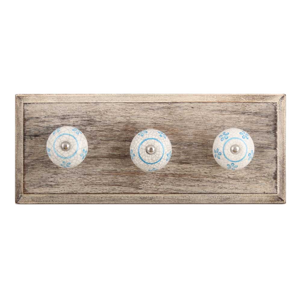 Turquoise Floral Crackle Ceramic Wooden Hook. A Perfect Complement to the Soft Tone of the Wood are these White Traditional Hat and Coat Hook Made of Genuine Porcelain and Brass. It can be use to Hang Jewellery, Leashes, Towels, Scarves, Light Weight Sweaters, Caps etc.