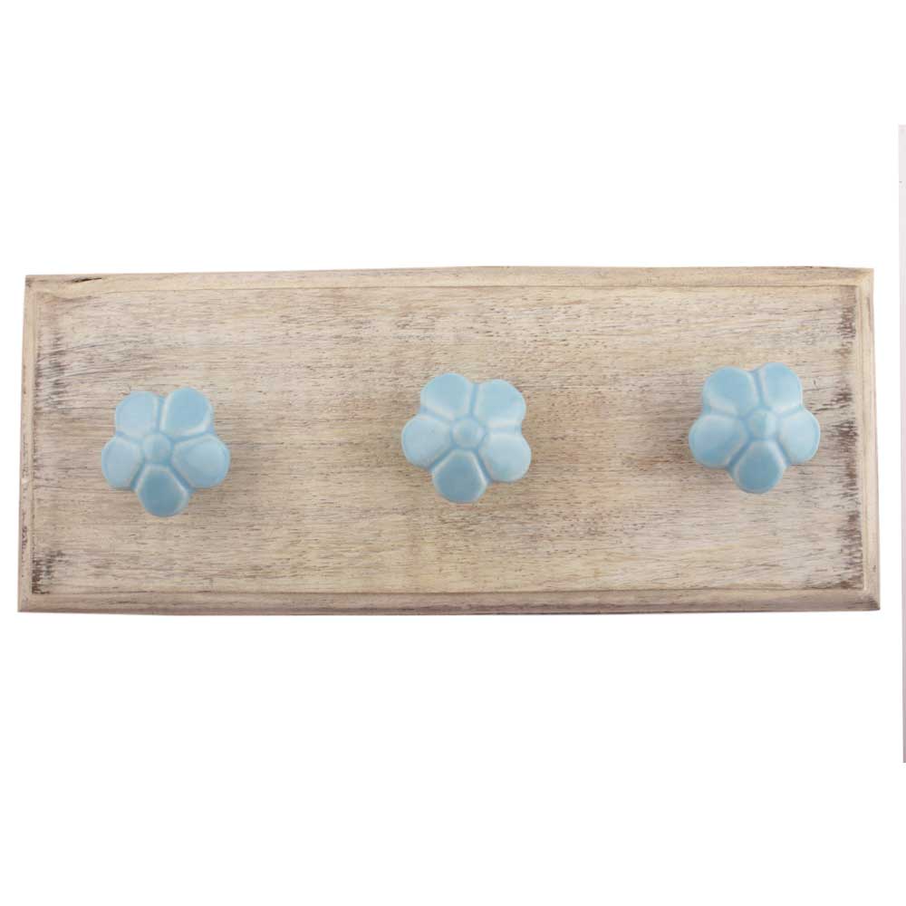 Turquoise Flower Ceramic Wooden Hooks. A Perfect Complement to the Soft Tone of the Wood are these White Traditional Hat and Coat Hook Made of Genuine Porcelain and Brass. It can be used to Hang Jewelry, Leashes, Towels, Scarves, Light Weight Sweaters, Caps etc.