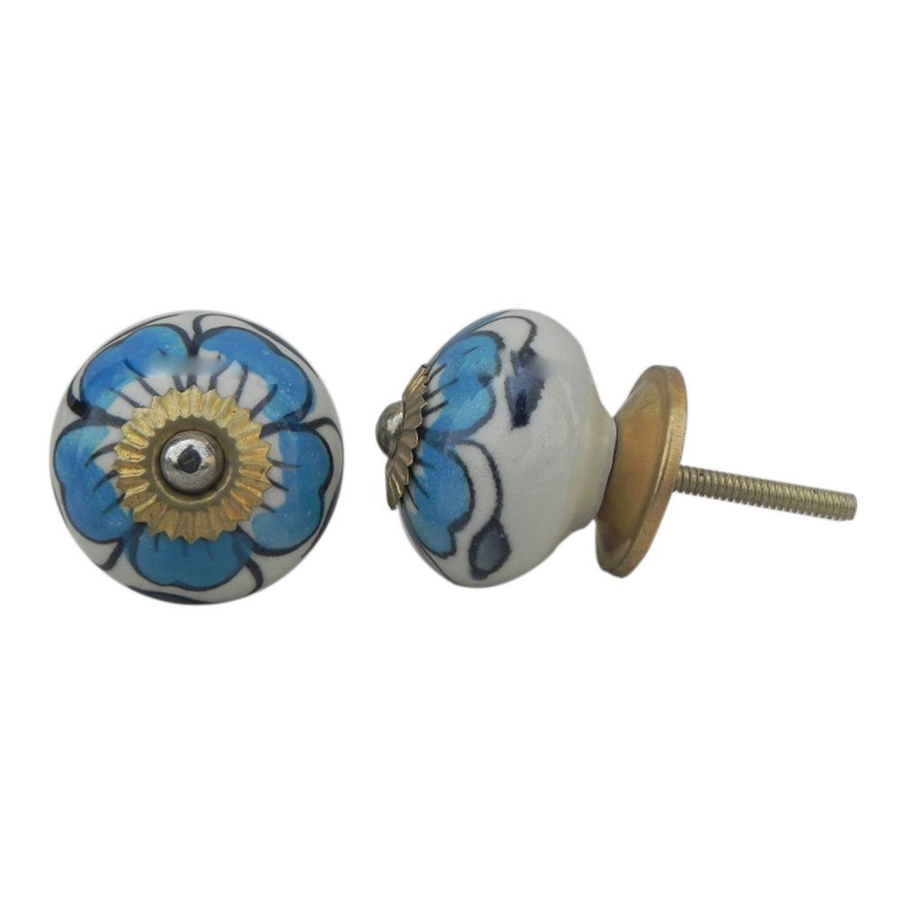 Turquoise Flower Ceramic Knob. Ideal for kitchen cabinets, kitchen drawers, dining room, bed room, chest drawers, dressing tables, almirah