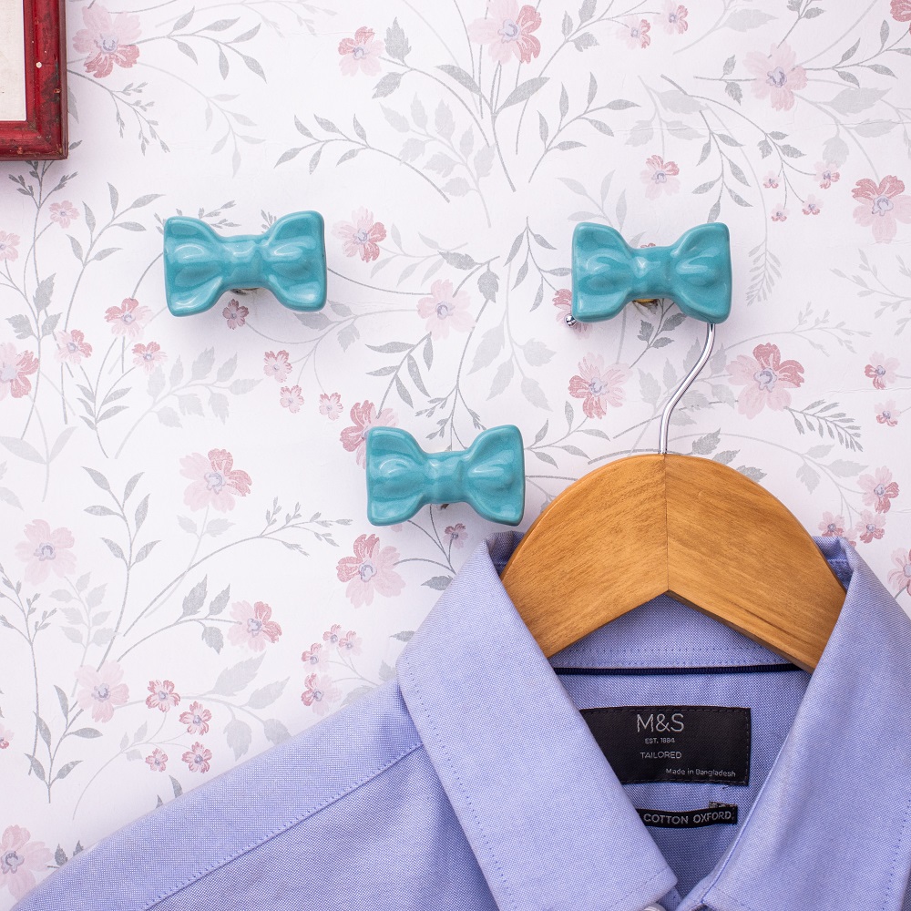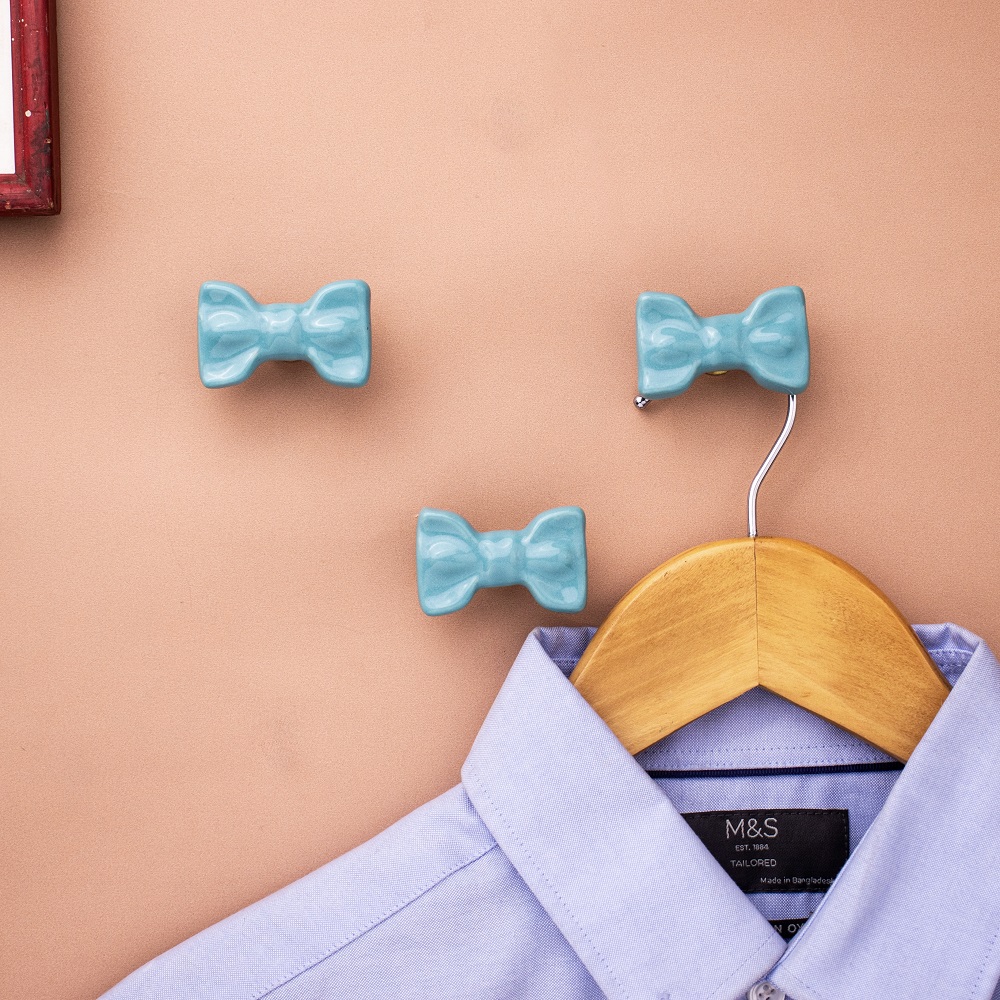 The Turquoise Green Ceramic Bow Modern Wall Hook (Pack of 3) brings a splash of color and a touch of elegance to your everyday organization. Handcrafted from premium ceramic, each hook features a delicate bow shape glazed in a vibrant turquoise green. This refreshing hue and thoughtful design make these hooks the perfect way to add functionality with flair. Whether in a kid’s room, bathroom, or entryway, these hooks are a stylish solution for keeping your essentials in place.