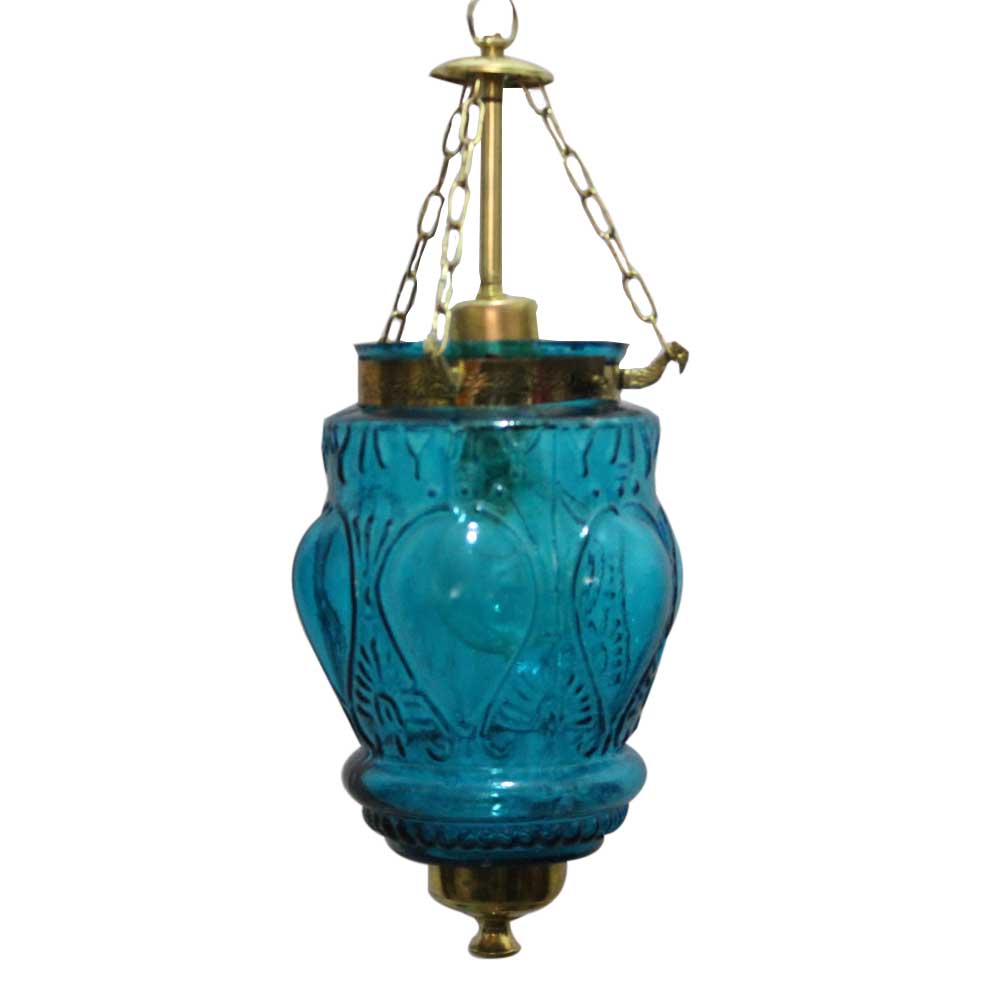Turquoise Hanging glass light fixture Small Lamp