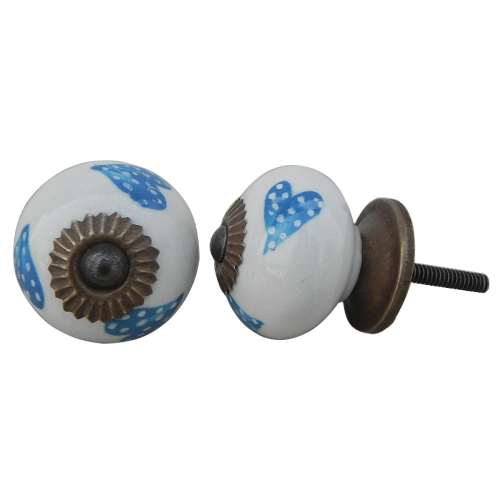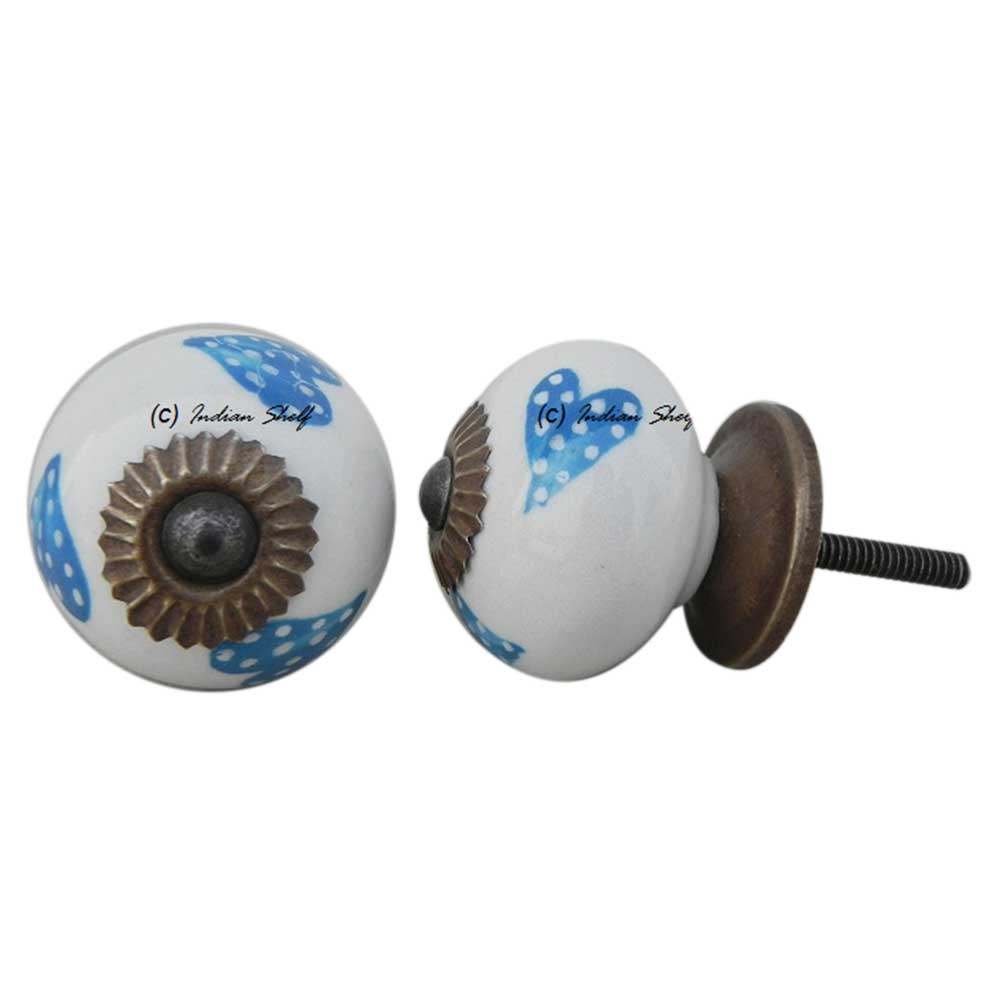 Turquoise Heart Ceramic Round Knob. Ideal for kitchen cabinets, kitchen drawers, dining room, bed room, chest drawers, dressing tables, almirah