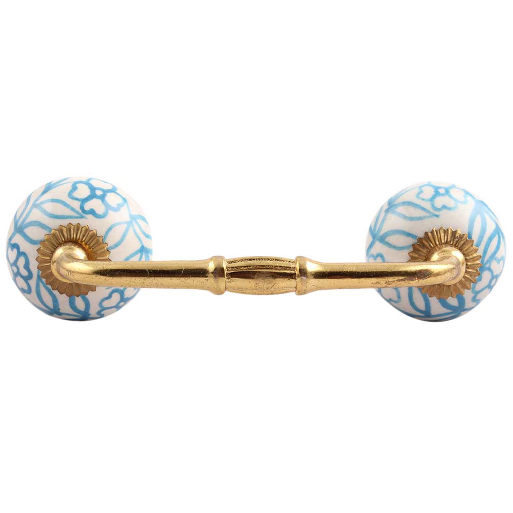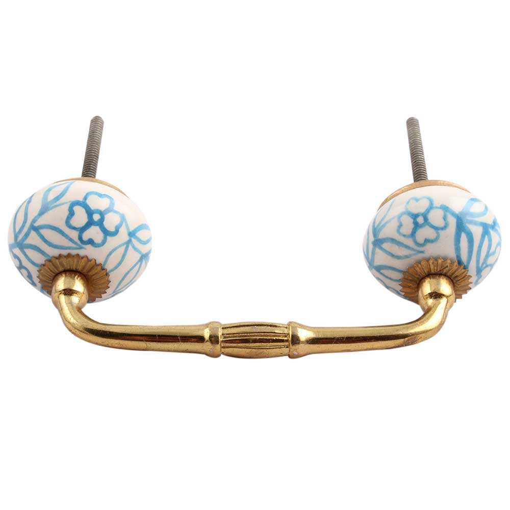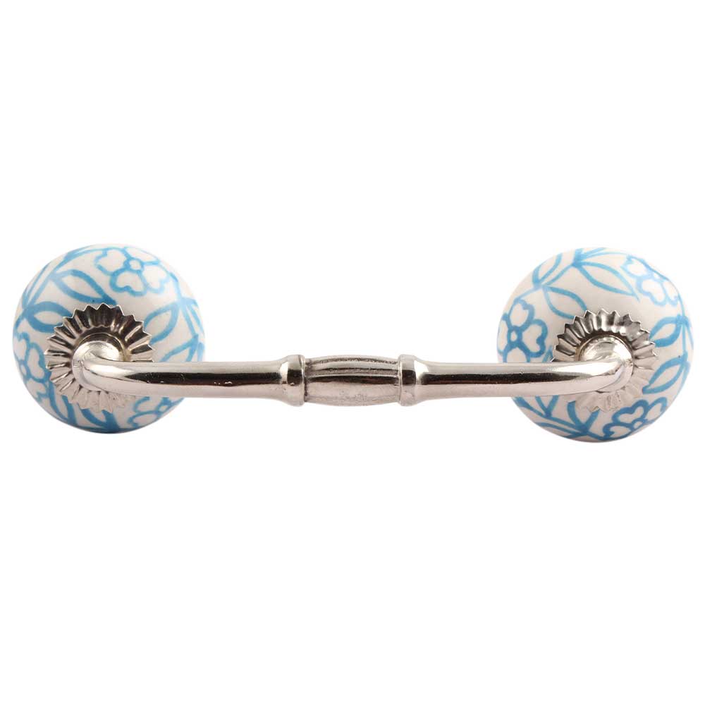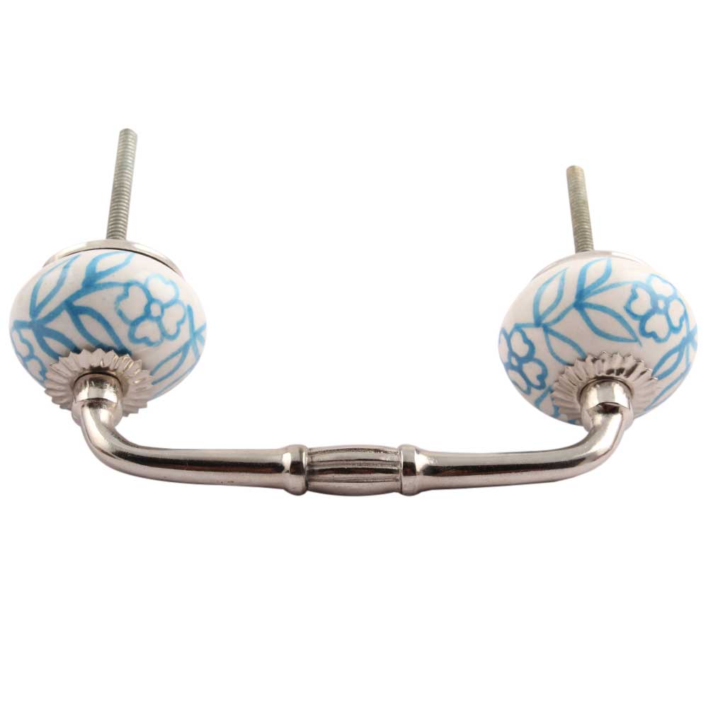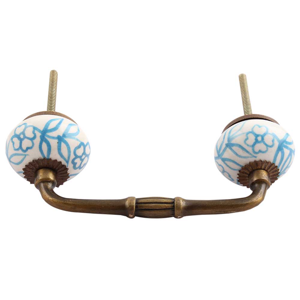 Turquoise Leaf Floral Ceramic Bridge Handle. Ideal for Drawer, Dresser, Cabinet, Wardrobe, Cupboard and Almirah.