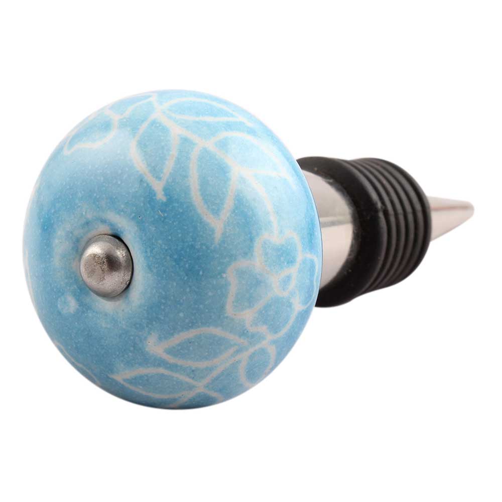 Turquoise Leaf Floral Ceramic Wine Stopper