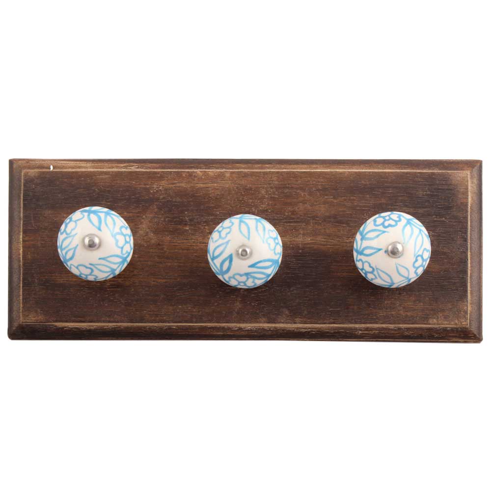 Turquoise Leaf Floral Ceramic Wooden Hook. A Perfect Complement to the Soft Tone of the Wood are these White Traditional Hat & Coat Hook Made of Genuine Porcelain and Brass. It can be use to Hang Jewellery, Leashes, Towels, Scarves, Light Weight Sweaters, Caps Etc.