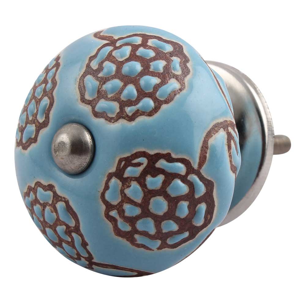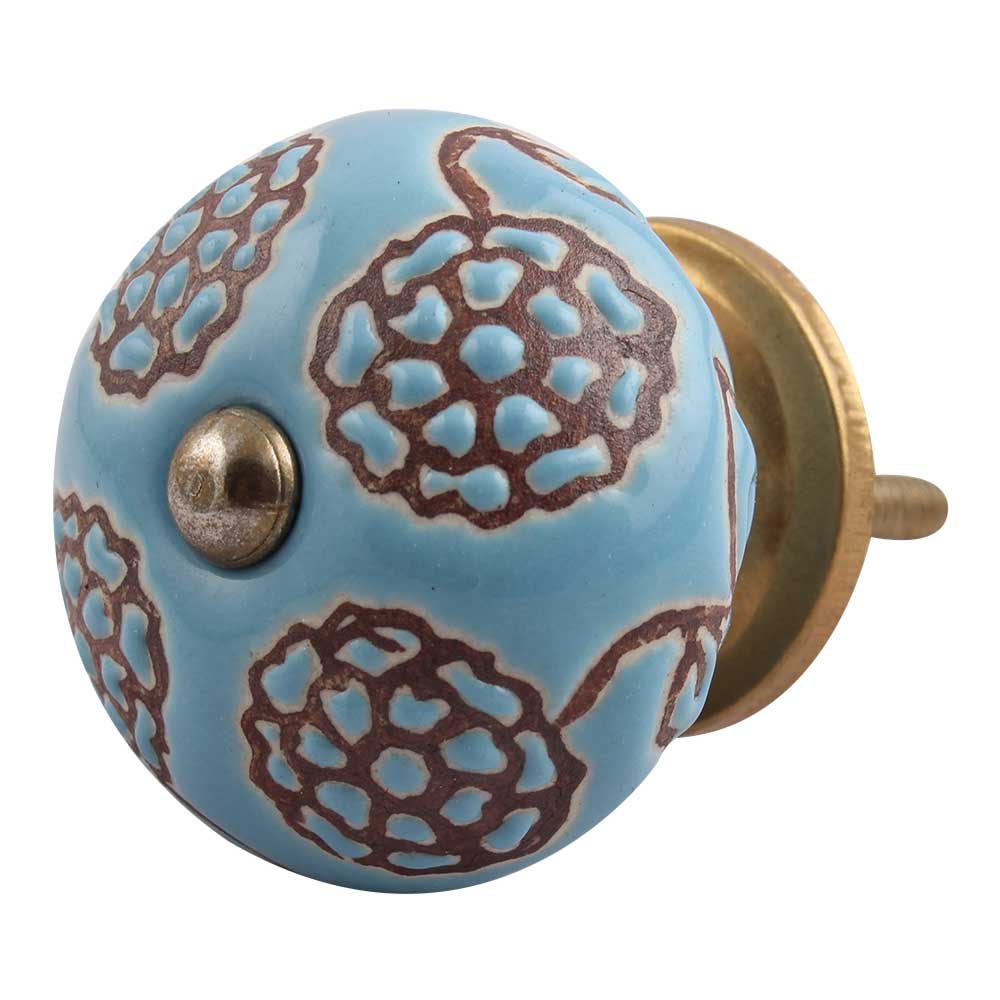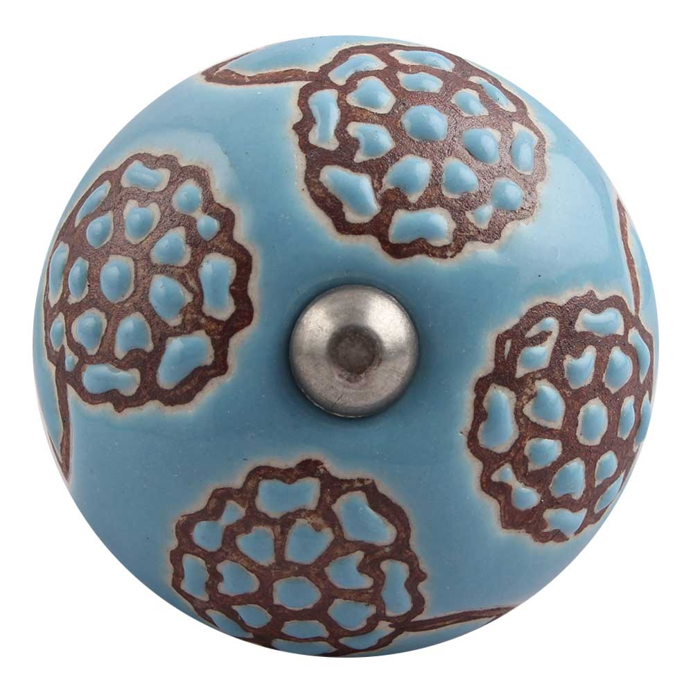 Turquoise Marigold Ceramic Floral Cabinet Knob