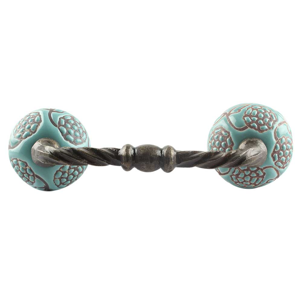 Turquoise Marigold Etched Ceramic Cut Bridge Handle
