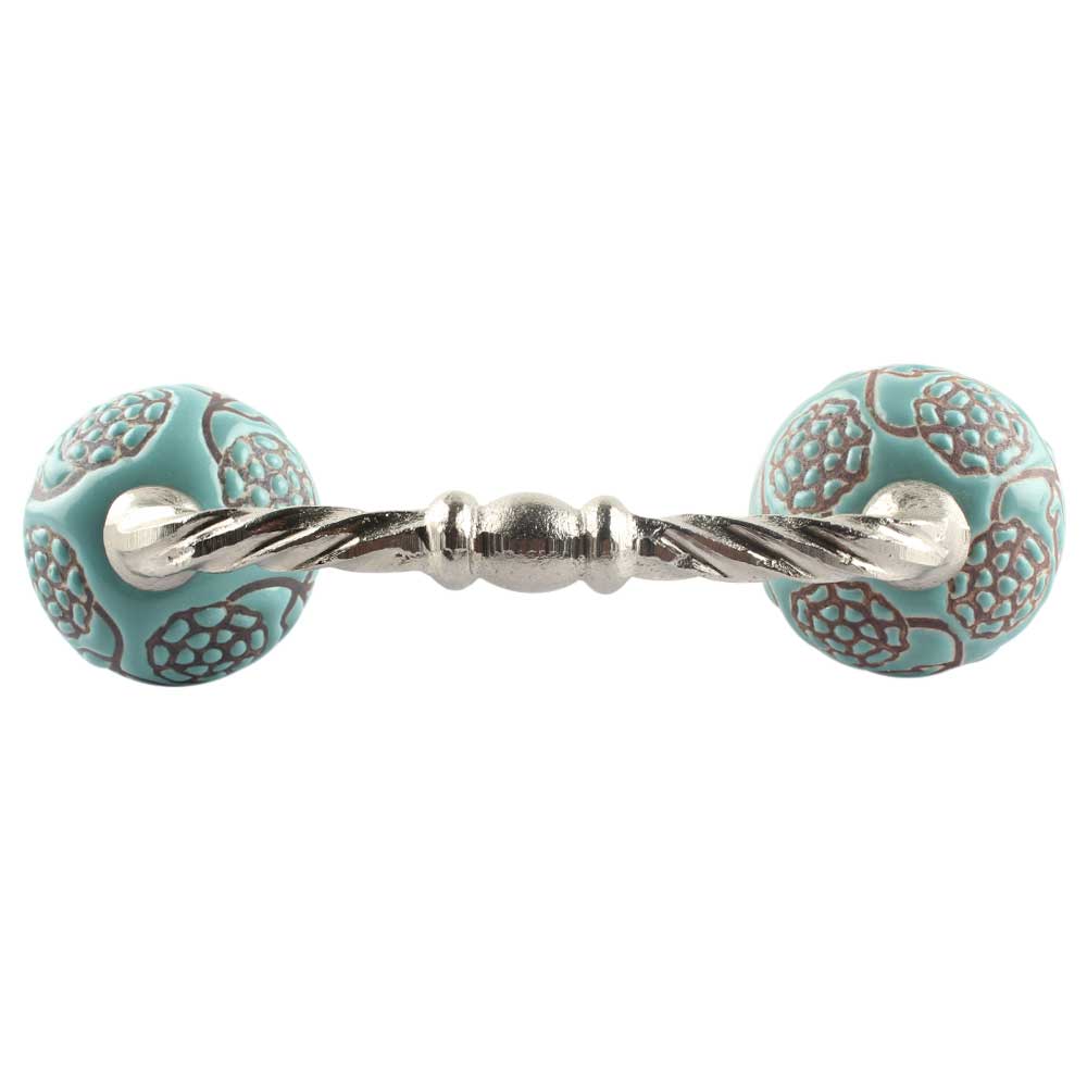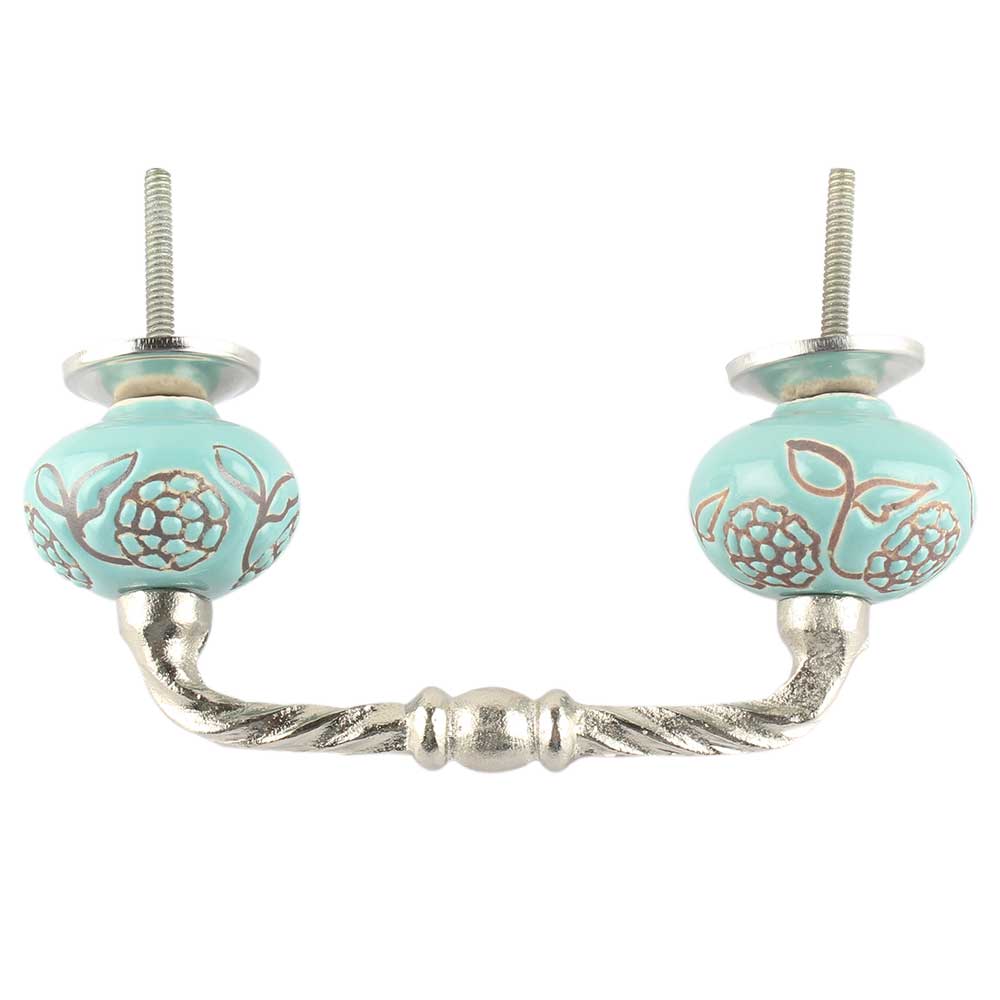 Turquoise Marigold Etched Ceramic Cut Bridge Handle. Ideal for Drawer, Dresser, Cabinet, Wardrobe, Cupboard and Almirah etc.