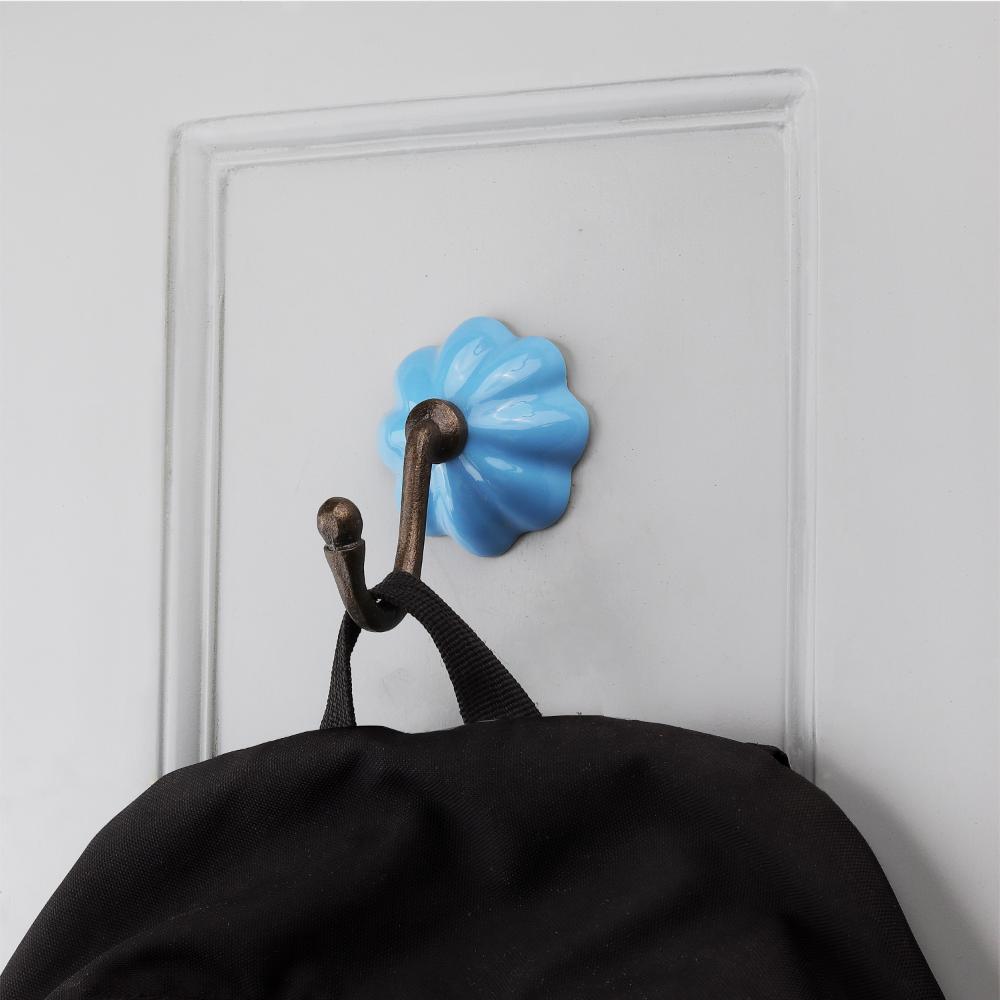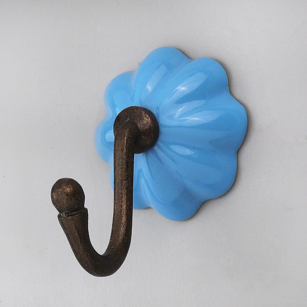 The melon-shaped turquoise ceramic knob adds a vintage pop of color and texture, turning a wall hook into a decorative accent.