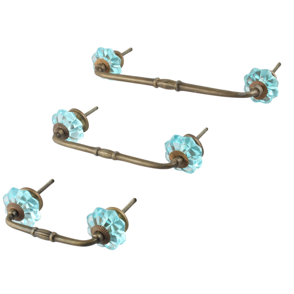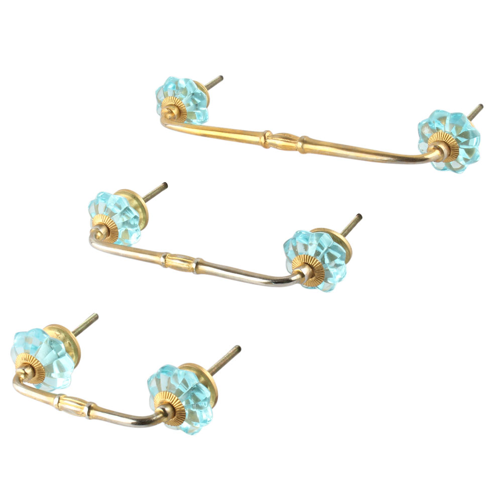 Turquoise Melon Glass Bridge Handle. Ideal for Drawer, Dresser, Cabinet, Wardrobe, Cupboard and Almirah.