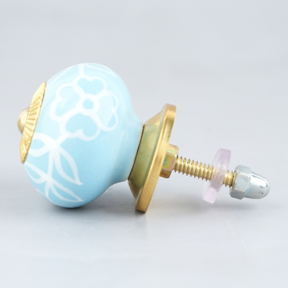 Turquoise Painted Leaf Knob, kitchen drawers, dining room, bed room, chest drawers, dressing tables, almirah