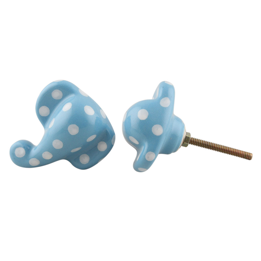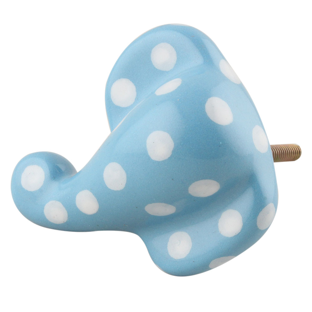 The delightful turquoise polka elephant face knob looks very beautiful. This furniture knob and handle is used for dressing up your kitchen cabinet, dresser drawers, drawers, or cupboard. Rust Free and easy to install.