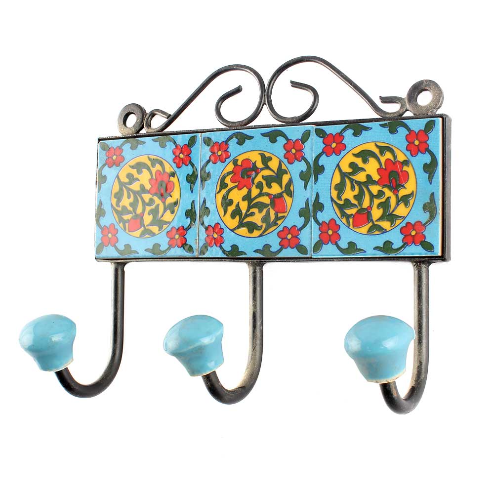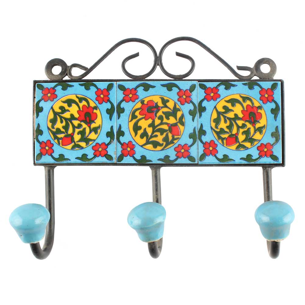 Turquoise Red Flower Ceramic Tiles Hooks