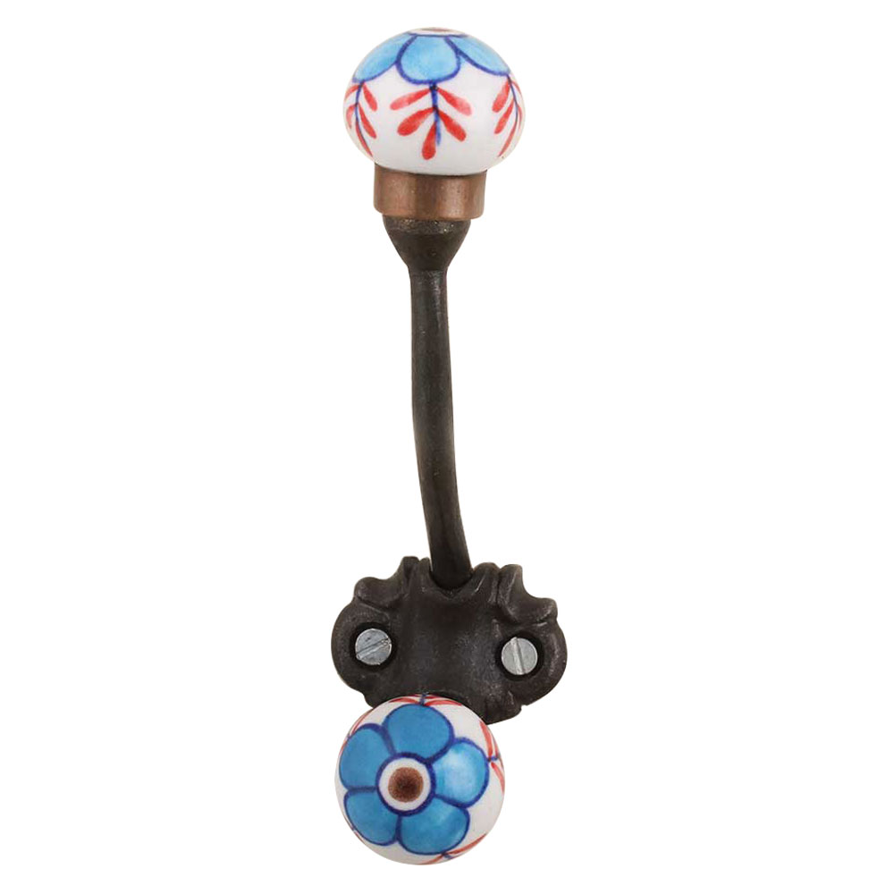 Turquoise Red Leaf Floral Iron-Hook-Ehg-70. When Put on Wall or Cabinet It Gives A Sturdy Look. This Hook is Strong Enough to Hold Your Cloths, Keys, Tea Cups, Coffee Mugs, Hand Towels Etc.