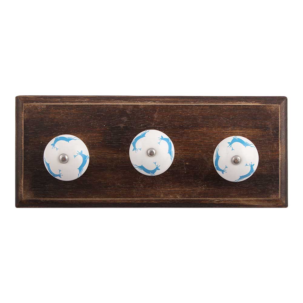 Turquoise Running Rein Deer Pattern Ceramic Wooden Hook. A Perfect Complement to the Soft Tone of the Wood are these White Traditional Hat & Coat Hook Made of Genuine Porcelain and Brass. It can be use to Hang Jewellery, Leashes, Towels, Scarves, Light Weight Sweaters, Caps Etc.