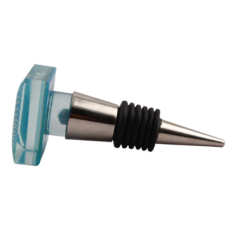Turquoise Square Flat Glass Wine Stopper.zinc alloy wine bottle stopper with attractive Jute Bag Packaging.