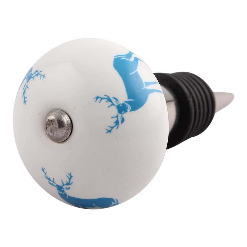 Turquoise Stainding Rein Deer Pattern Ceramic Wine Stopper