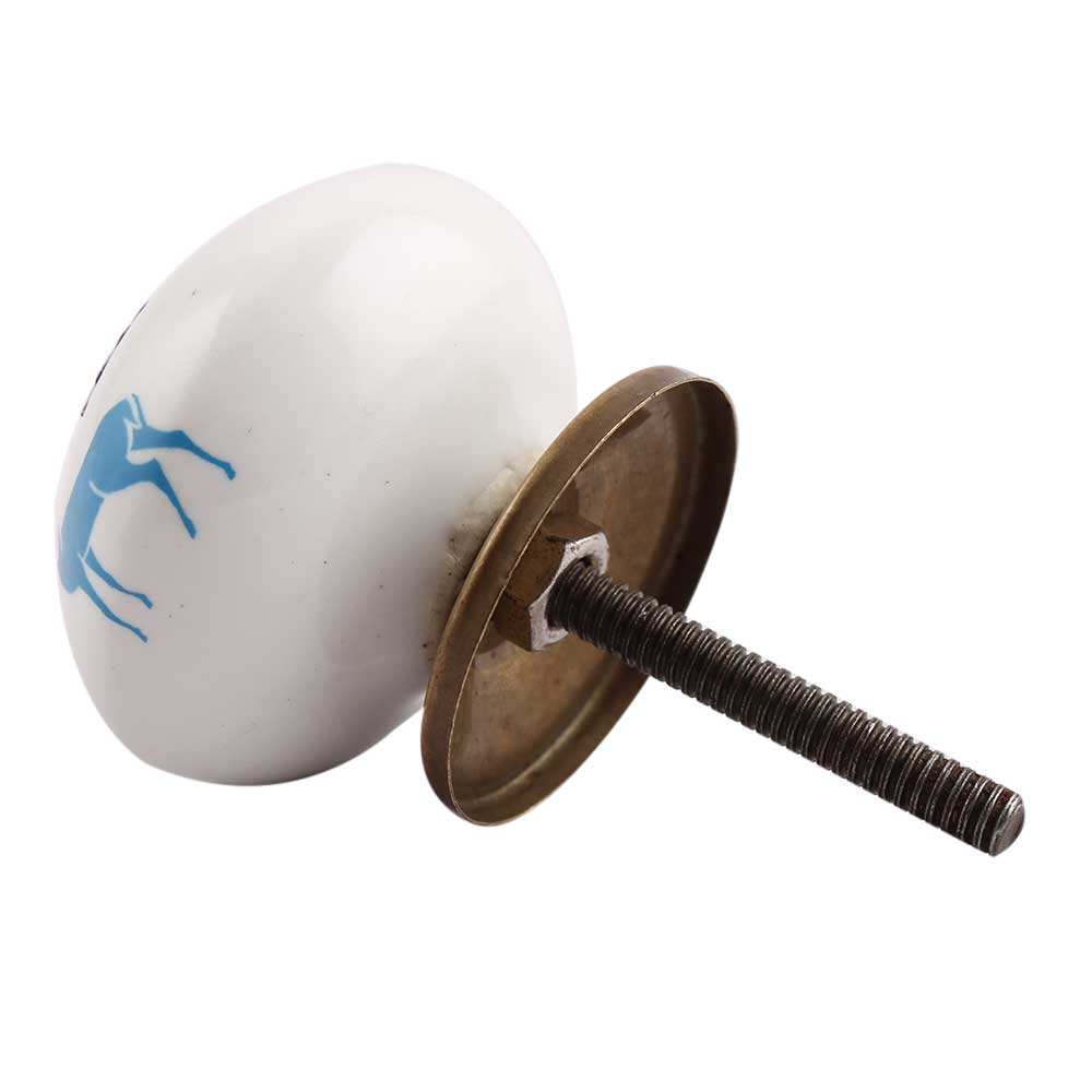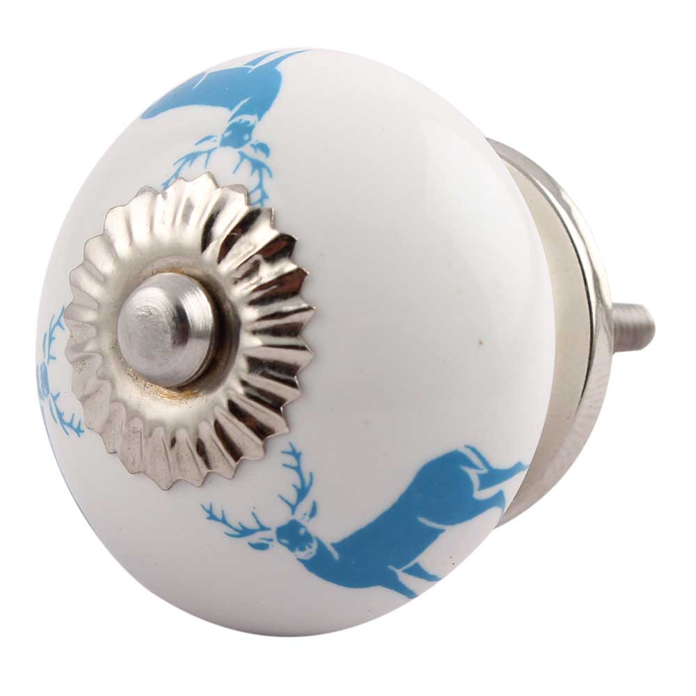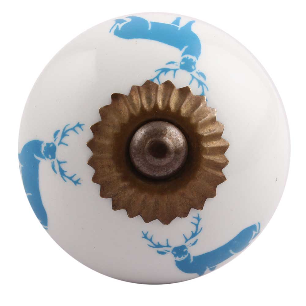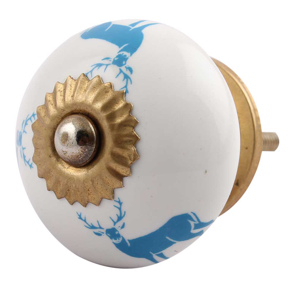 Turquoise Standing Rein Deer Pattern Ceramic Dresser Knob Online
