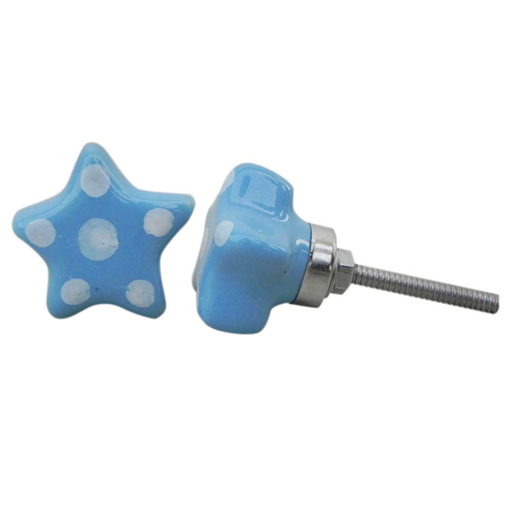 Turquoise Star White Polka Ceramic Wardrobe Knob