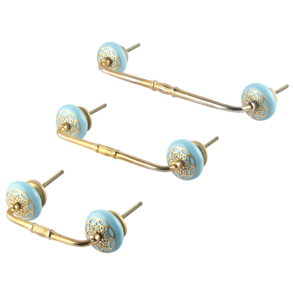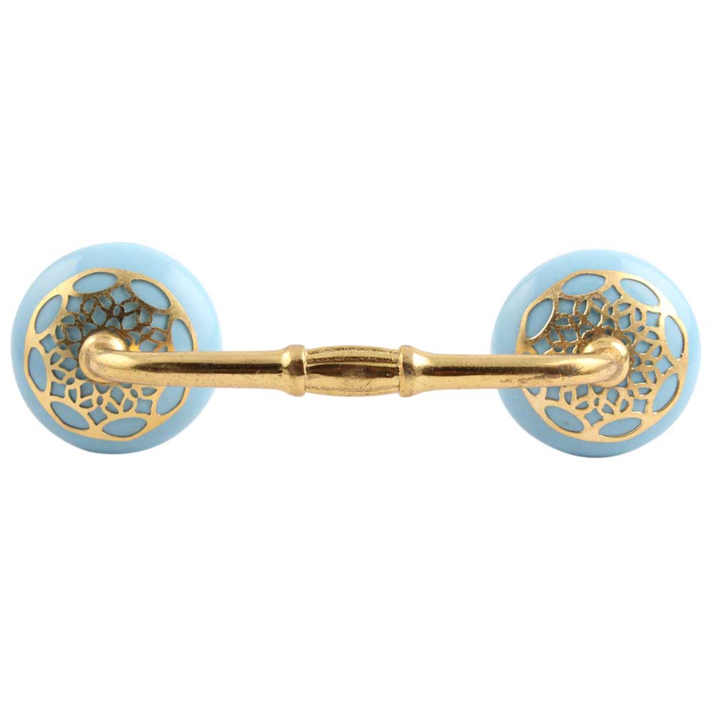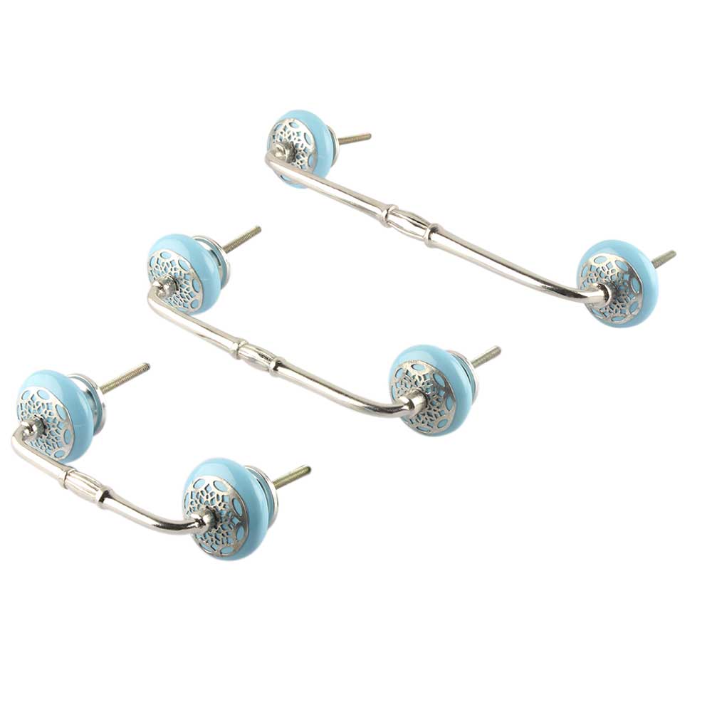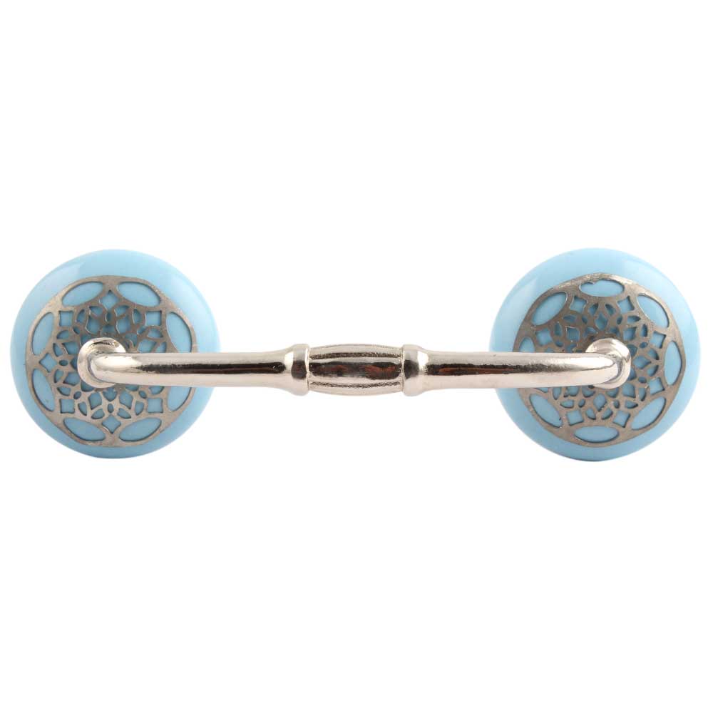 Turquoise Strewn Ceramic Bridge Handle. Ideal for Drawer, Dresser, Cabinet, Wardrobe, Cupboard and Almirah.