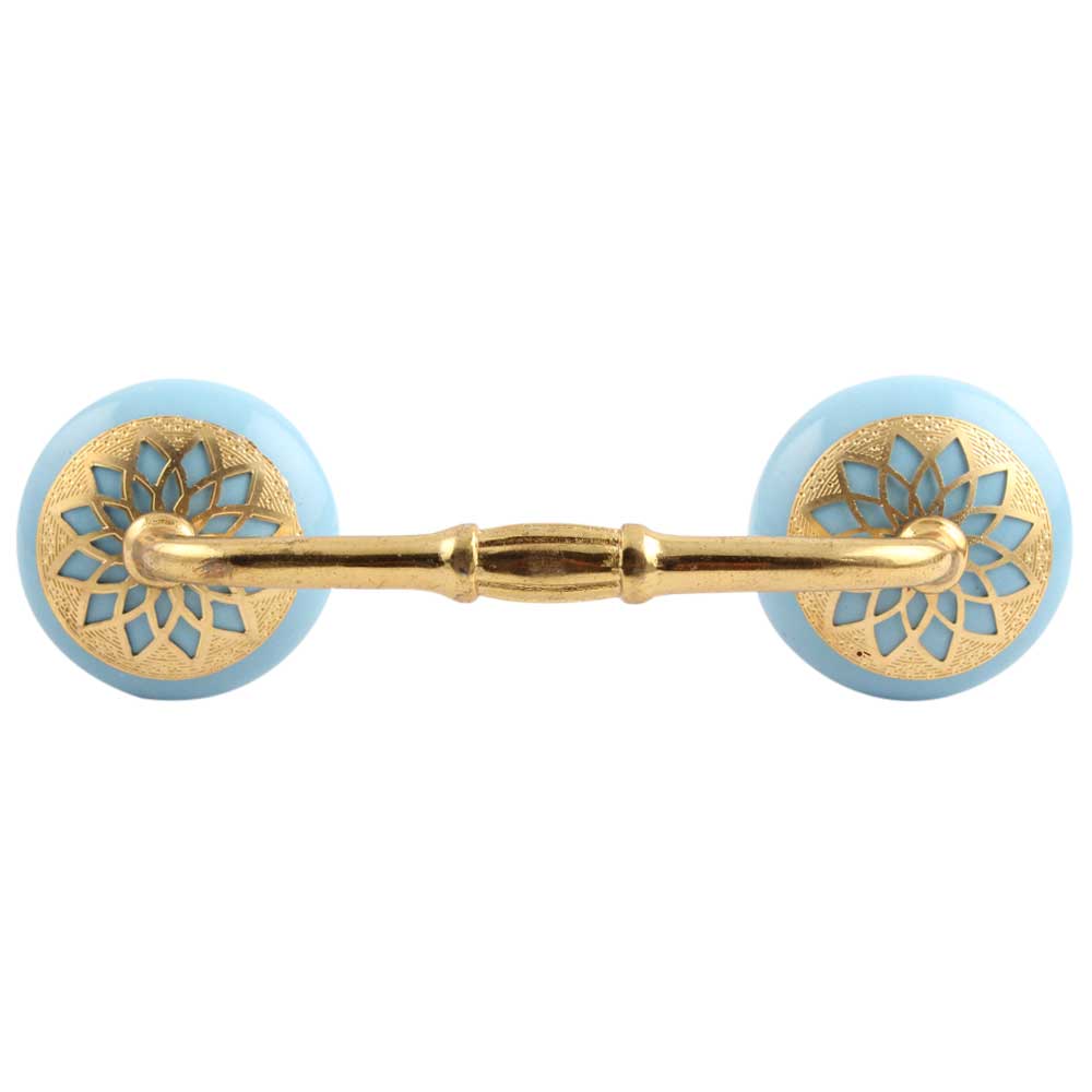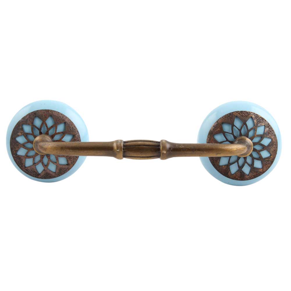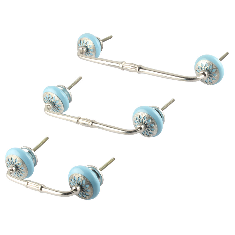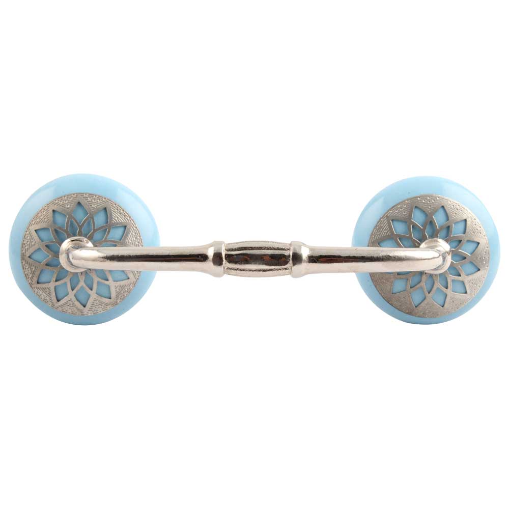 Turquoise Strewn Ceramic Bridge Handle. Ideal for Drawer, Dresser, Cabinet, Wardrobe, Cupboard and Almirah.