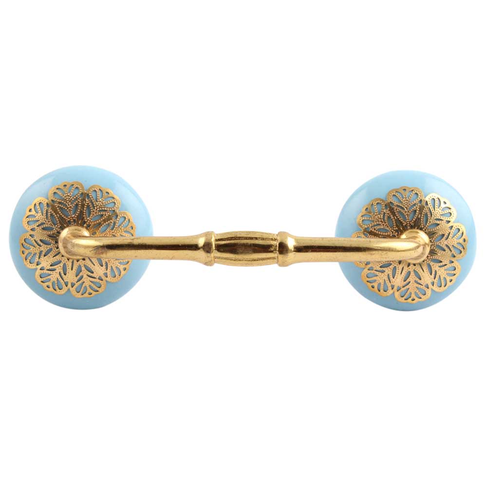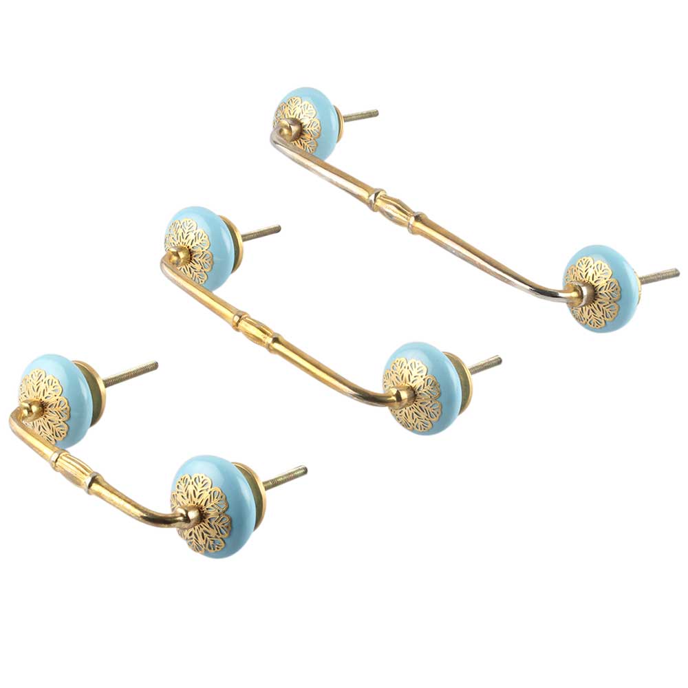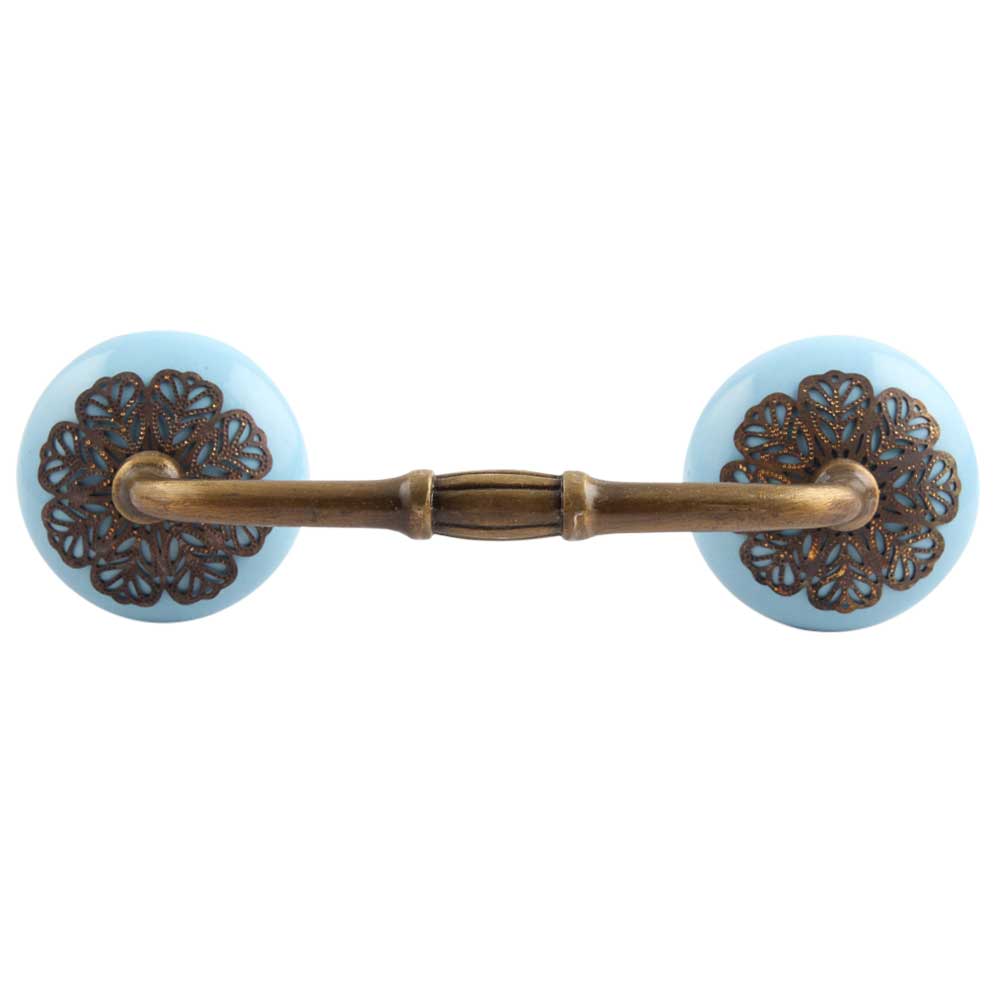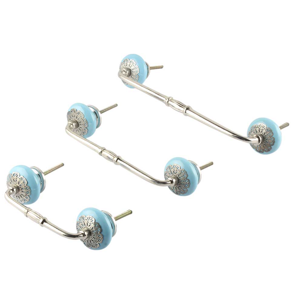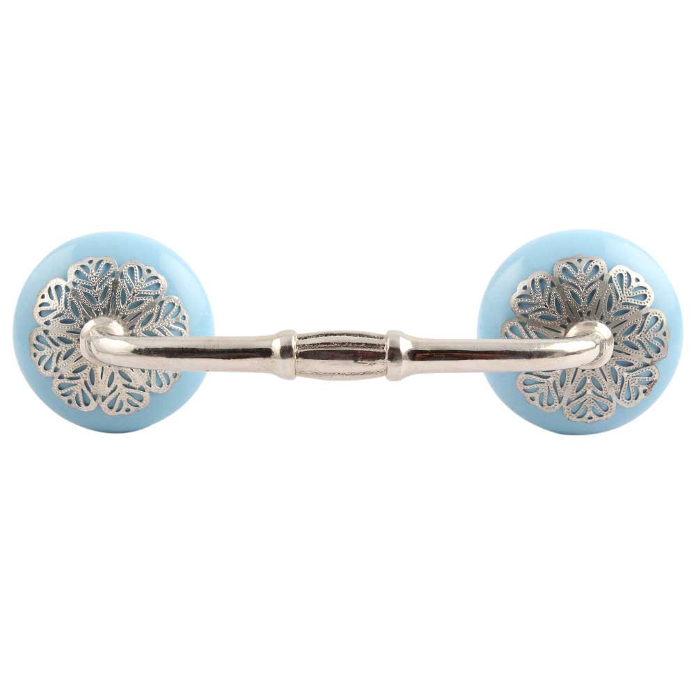 Turquoise Strewn Flat Ceramic Bridge Handle. Ideal for Drawer, Dresser, Cabinet, Wardrobe, Cupboard and Almirah.