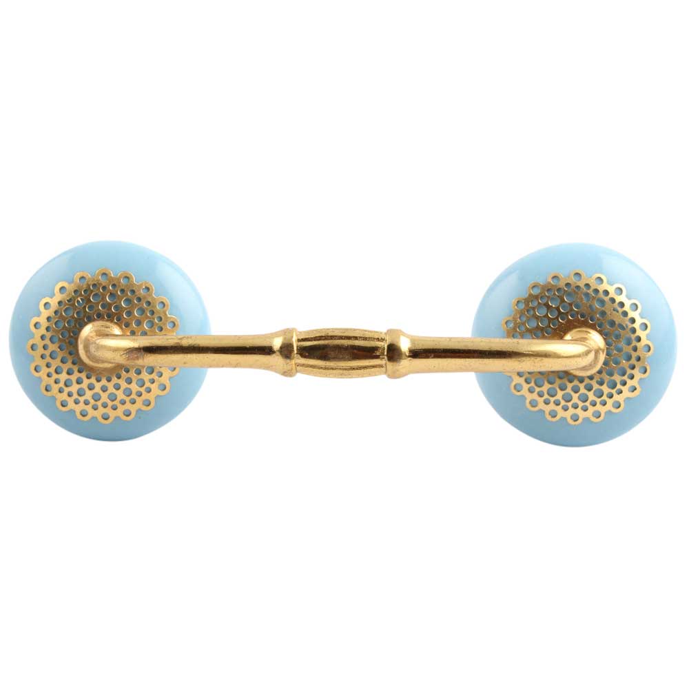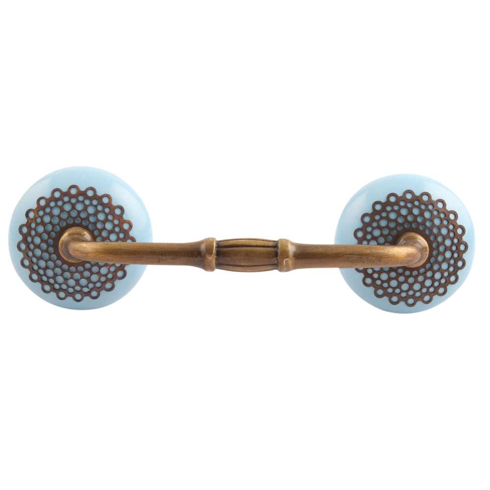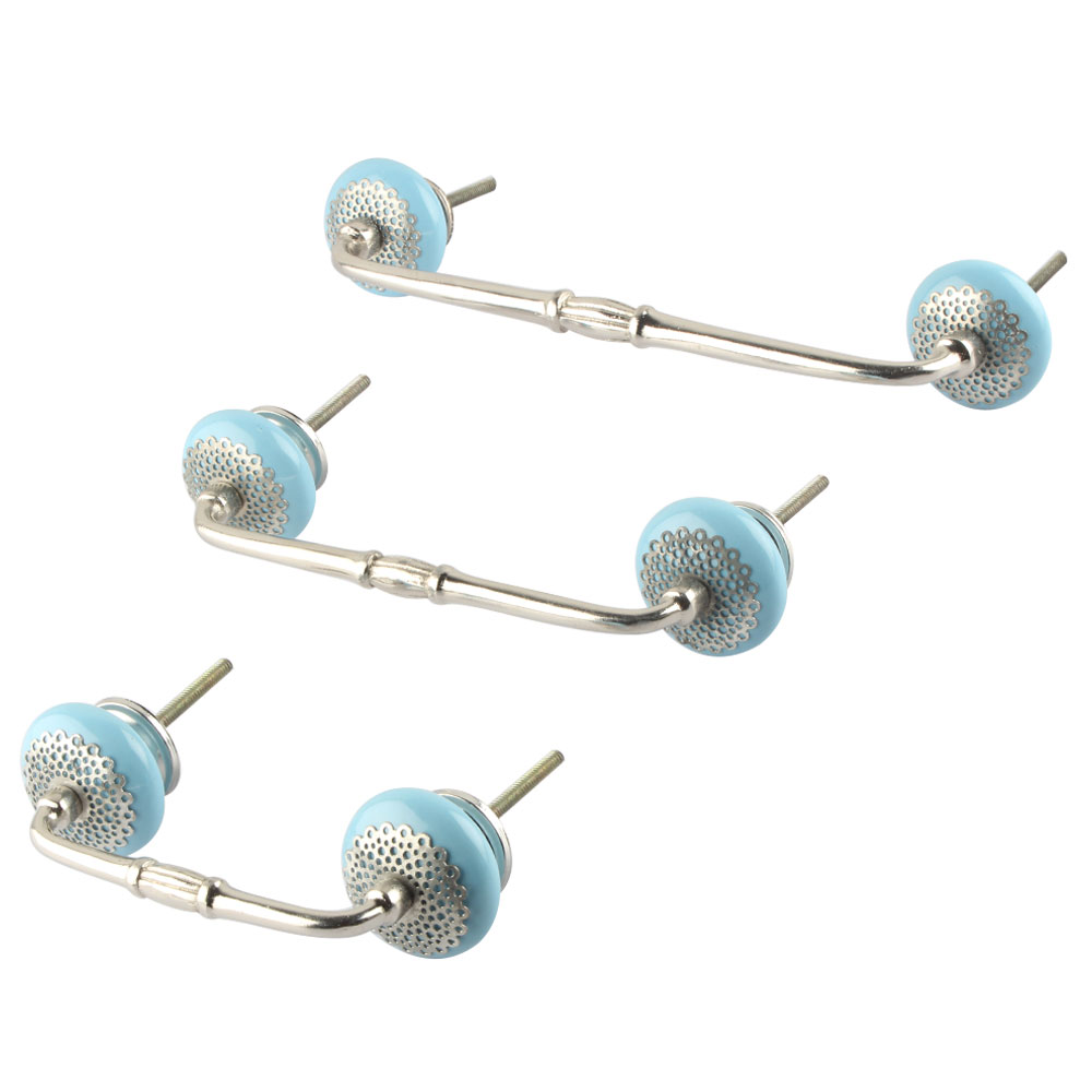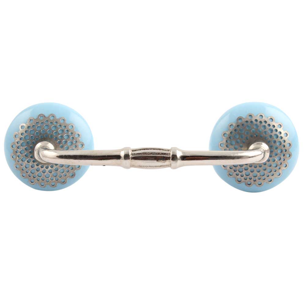 Turquoise Strewn Flat Ceramic Bridge Handle. Ideal for Drawer, Dresser, Cabinet, Wardrobe, Cupboard and Almirah.