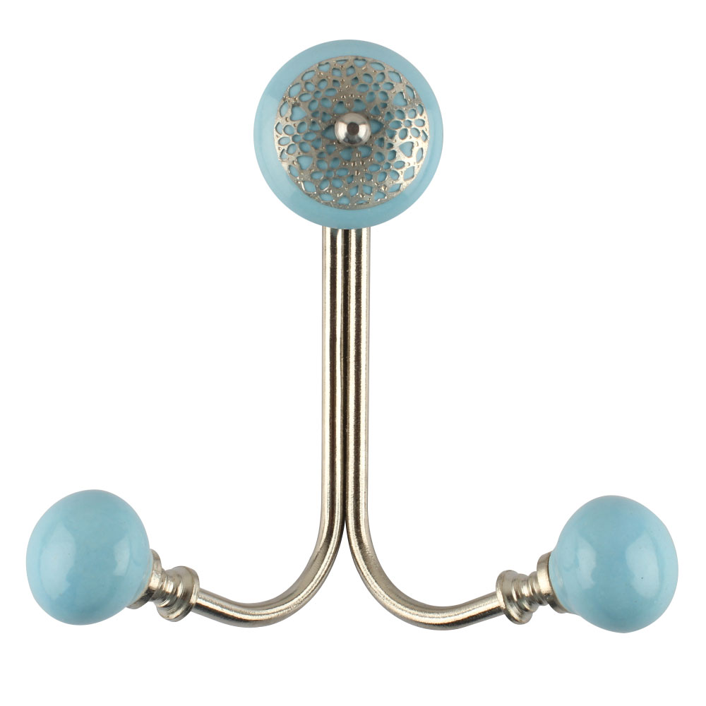 The Turquoise Strewn Flat Wired Ceramic Hook combines craftsmanship and contemporary color to bring both form and function to your walls. Handmade from kiln-fired ceramic and paired with a clean flat-wire silhouette, this hook is a stylish solution for organizing while adding a bold visual accent. The glossy turquoise glaze is carefully applied for a finish that stands out yet integrates seamlessly into eclectic, modern, or coastal interiors. No two are identical—each hook carries slight variations that make it uniquely yours.