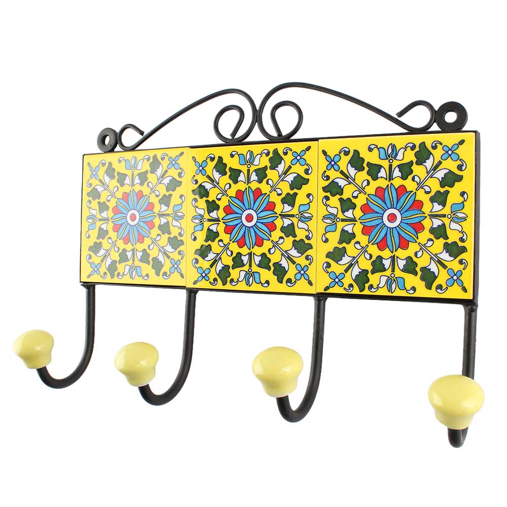 Turquoise Sunflower Ceramic Tile Hook. When Put on Wall or Cabinet It is An Art in Itself. The Metal Part of this Hook is Black Powder Coated.