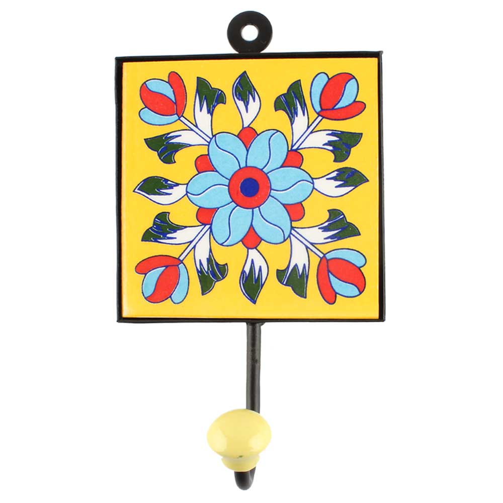 Turquoise Sunflower Ceramic Tile Hook
