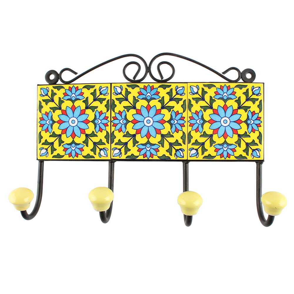 Turquoise Sunflower Ceramic Tile Hook Online. When Put on Wall or Cabinet It is An Art in Itself. The Metal Part of this Hook is Black Powder Coated.