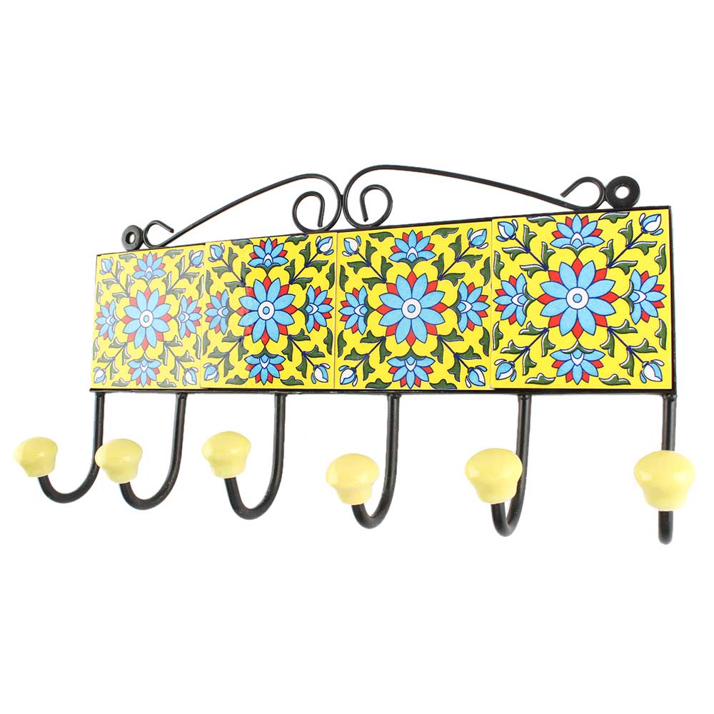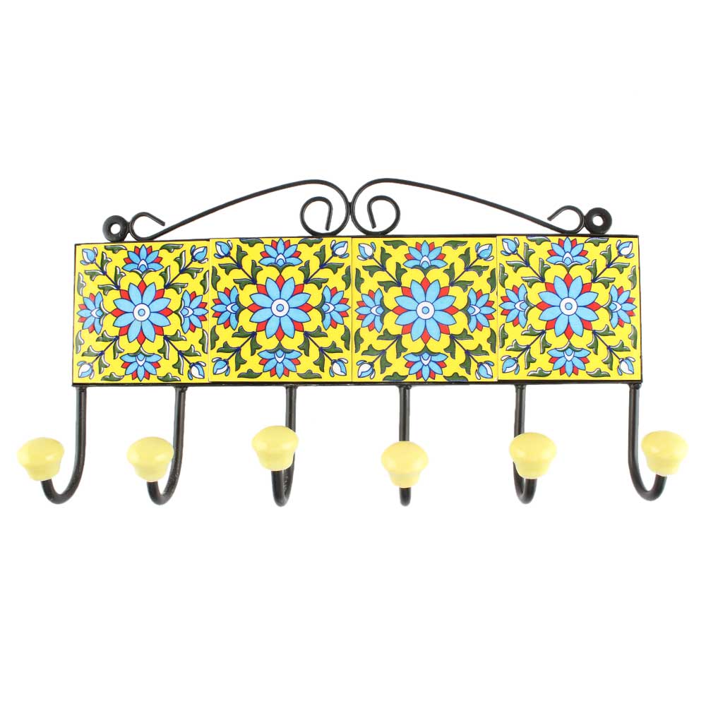 Turquoise Sunflower Ceramic Tile Hook With Yellow Base