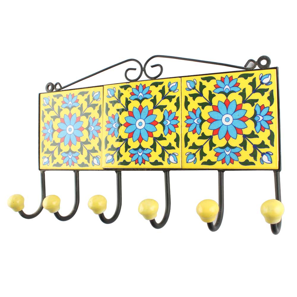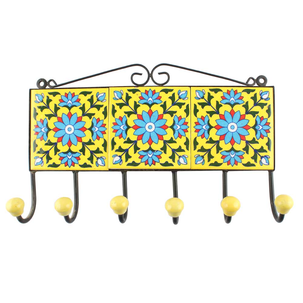Turquoise Sunflower Ceramic Tiles Hook Online. When Put on Wall or Cabinet It is An Art in Itself. The Metal Part of this Hook is Black Powder Coated.