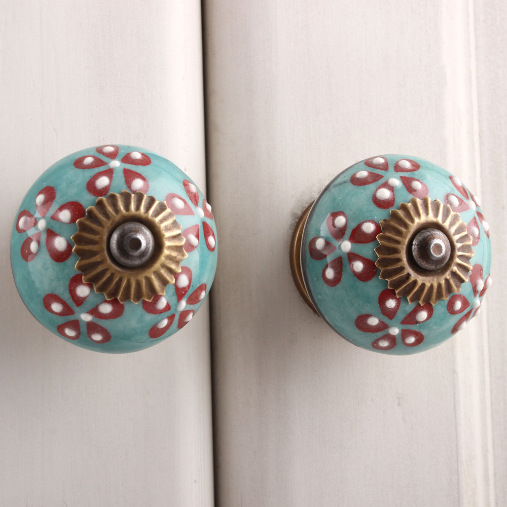 Turquoise Tiny Flower Cabinet Knob