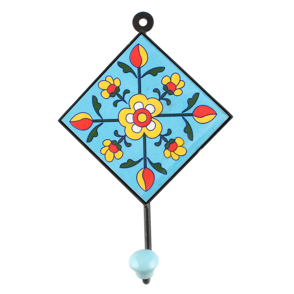 Turquoise Tiny Flower Ceramic Tiles Hook