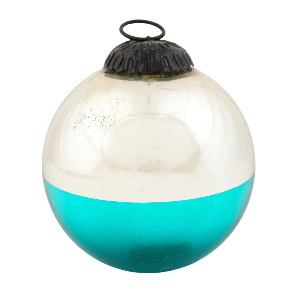 • Turquoise Vintage Style Round Glass Christmas Ornament