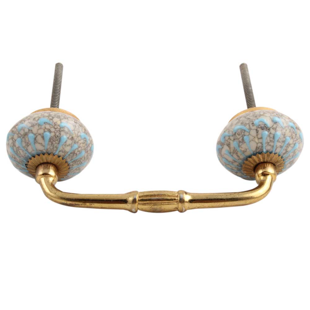 Turquoise Wheel Crackle Ceramic Bridge Handle. Ideal for Drawer, Dresser, Cabinet, Wardrobe, Cupboard and Almirah etc.