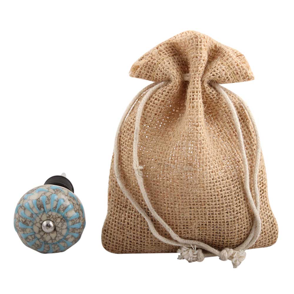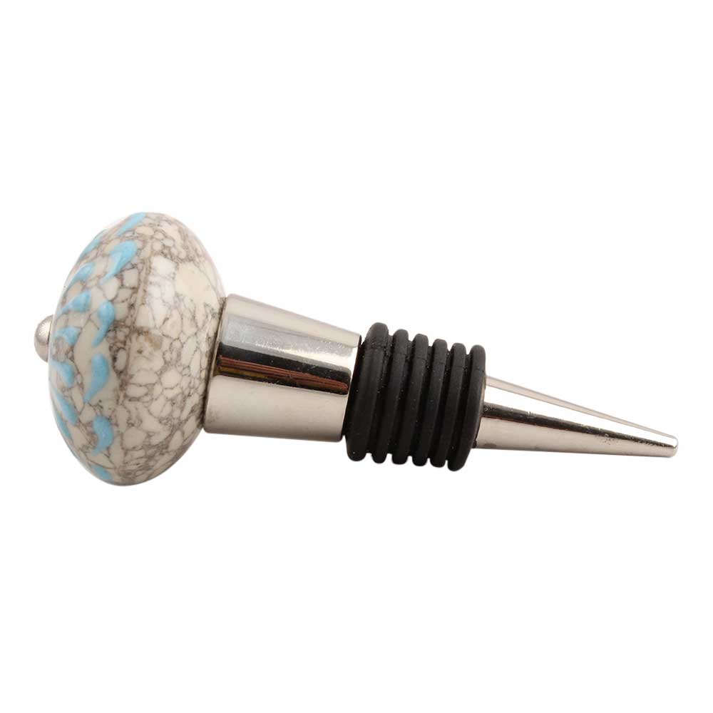 Turquoise Wheel Crackle Ceramic Wine Stopper. Zinc Alloy Wine Bottle Stopper with Attractive Jute Bag Packaging.