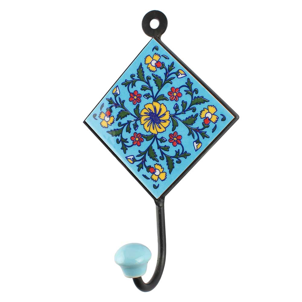 Turquoise Wheel Flower Ceramic Tiles Hooks
