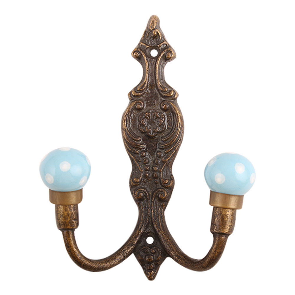 Turquoise White Dot Ceramic Iron Hook. When Put on Wall or Cabinet It Gives A Sturdy Look. This Hook is Strong Enough to Hold Your Cloths, Keys, Tea Cups, Coffee Mugs, Hand Towels Etc