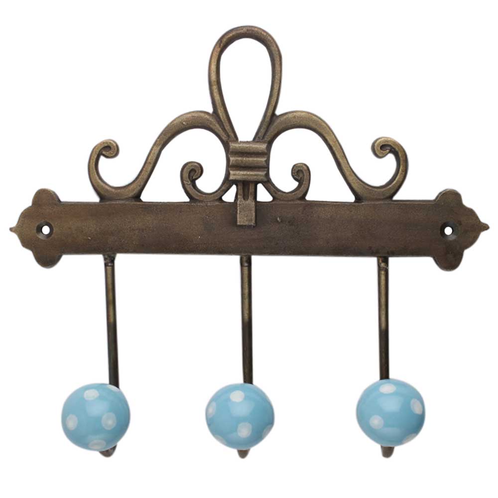 Turquoise White Dot Ceramic Iron Hook. A Perfect Complement to the Soft Tone of the Wood are these White Traditional Hat Coat Hook Made of Genuine Porcelain and Brass. It can be use to Hang Jewellery, Leashes, Towels, Scarves, Light Weight Sweaters, Caps Etc.